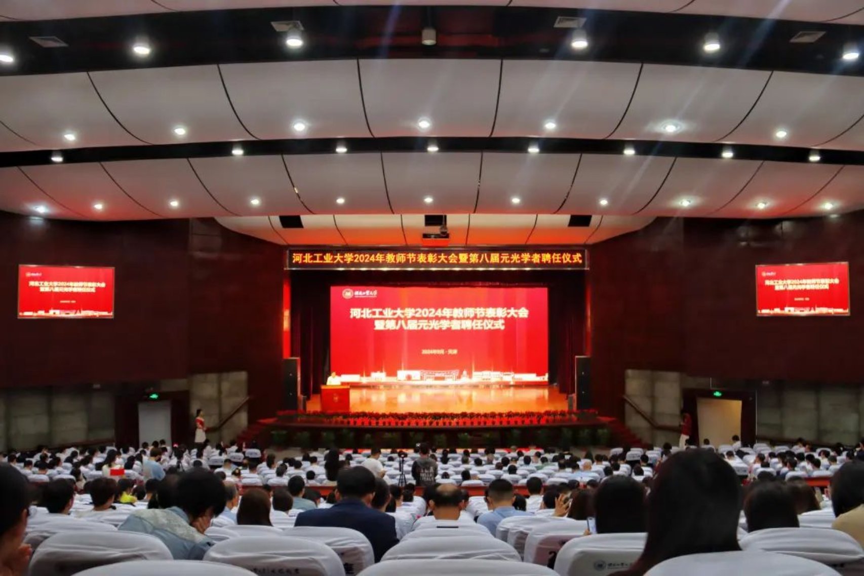 9月10日,beat365英国官方网站2024年教师节表彰大会暨第八届元光学者聘任仪式在北辰校区大学生活动中心礼堂举行。学校党委副书记贺立军、赵斌,副校长马国伟、王慧远、李子彪、陈鸿雁出席表彰大会。学校全体中层干部、教职工代表参加大会,共同见证、传承师者的光辉与荣耀,庆祝第40个教师节的到来。