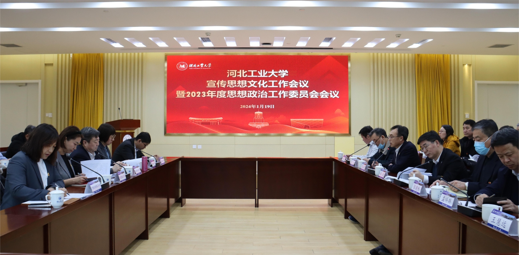 1月19日,beat365英国官方网站召开宣传思想文化工作会议暨2023年度思想政治工作委员会会议。围绕党的二十大以来学校的宣传思想文化工作进行分析研讨,并就2024年工作进行研究部署。全体在津校领导,思政工作委员会成员单位负责人参加会议。党委副书记贺立军主持会议。