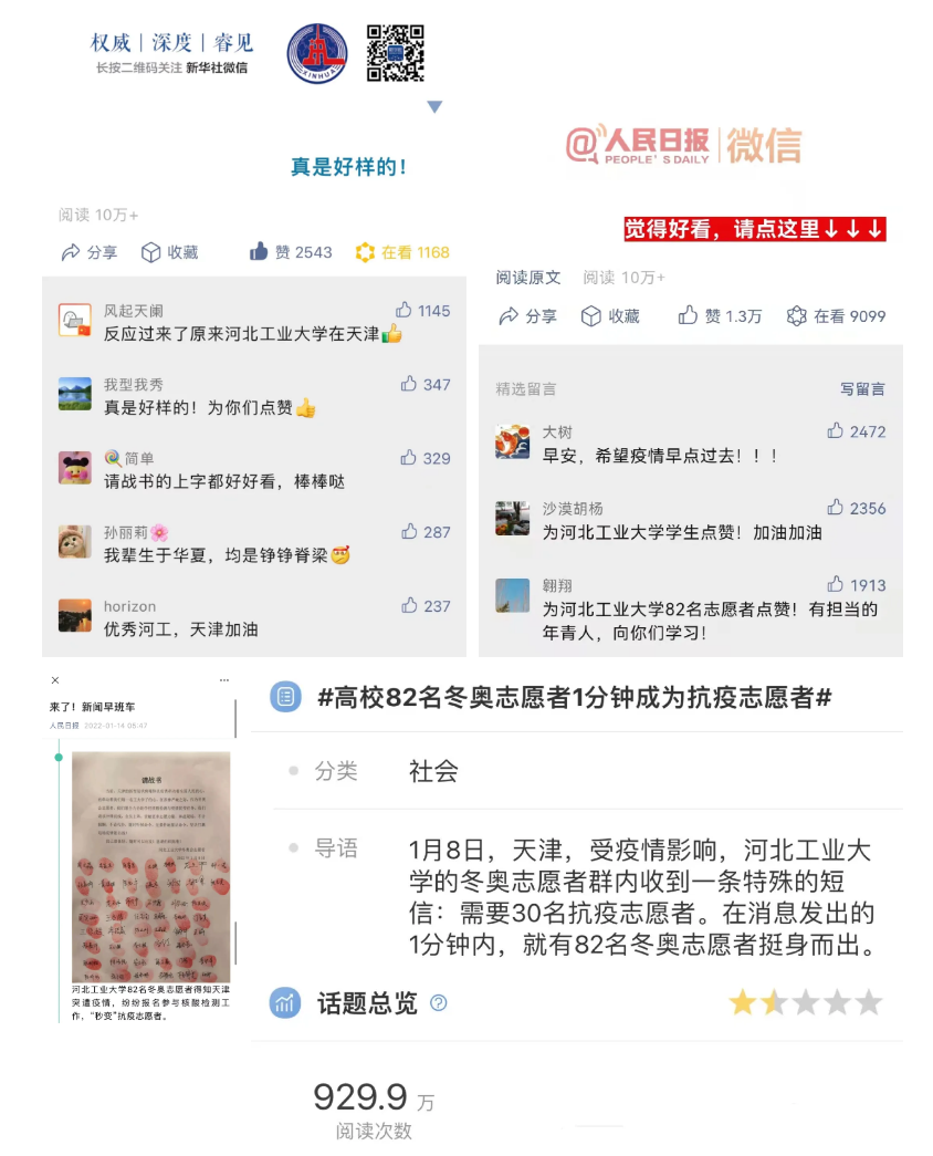 学习强国学习平台、新闻联播公众号、中国教育报、中国青年报、中国青年志愿者、中华全国学联、北京青年报、河北日报在内的多家主流媒体平台的关注与报道