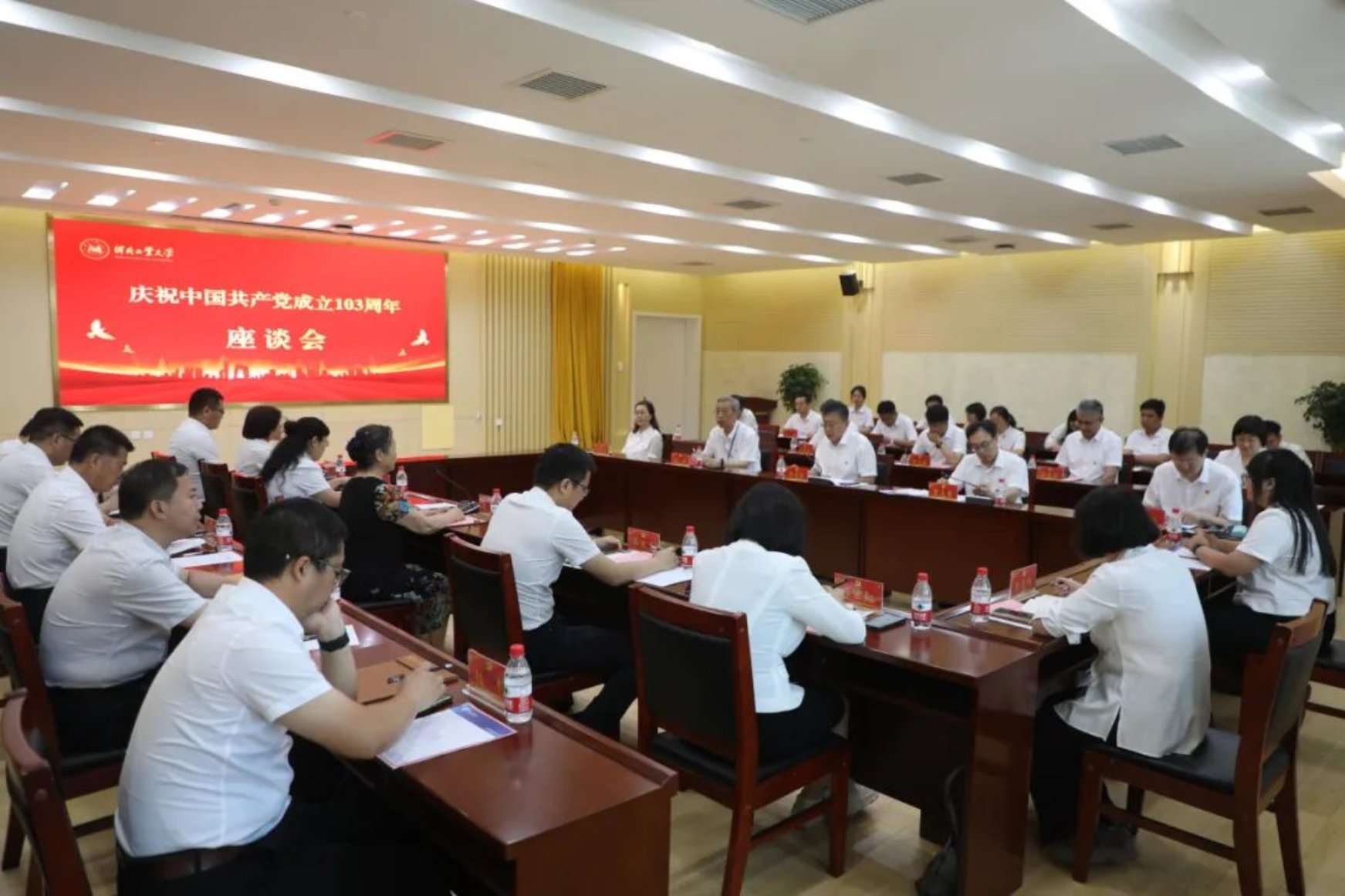 6月28日,beat365英国官方网站举行庆祝中国共产党成立103周年座谈会,进一步动员全校各级党组织和广大党员牢记习近平总书记殷殷嘱托,坚定信心、鼓足干劲、奋发进取,为全面推进学校“双一流”建设,服务区域特色产业经济发展,为强国建设、民族复兴伟业再立新功、再创佳绩。学校党委副书记张建畅出席会议并讲话,校党委副书记贺立军主持会议,校党委常委、副校长赵斌、王慧远、陈鸿雁,党委部门负责同志,二级党组织书记、师生代表参加座谈会。