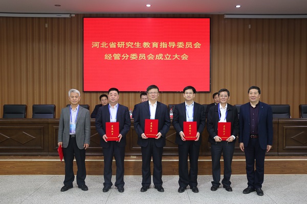 会上,校党委常委杨玉祯教授发表大会贺辞,代表学校对各位领导和专家学者的到来表示欢迎,同时对省学位委员会、省内各兄弟院校长期以来对学校建设与发展给予的大力支持表示了感谢。随后省政府学位委员会办公室主任赵清云宣读了河北省研究生教育指导委员会经管分委员会成员名单,并同省学位办季家林副主任分别为31位来自省内各高校经管类学科的委员颁发聘书。