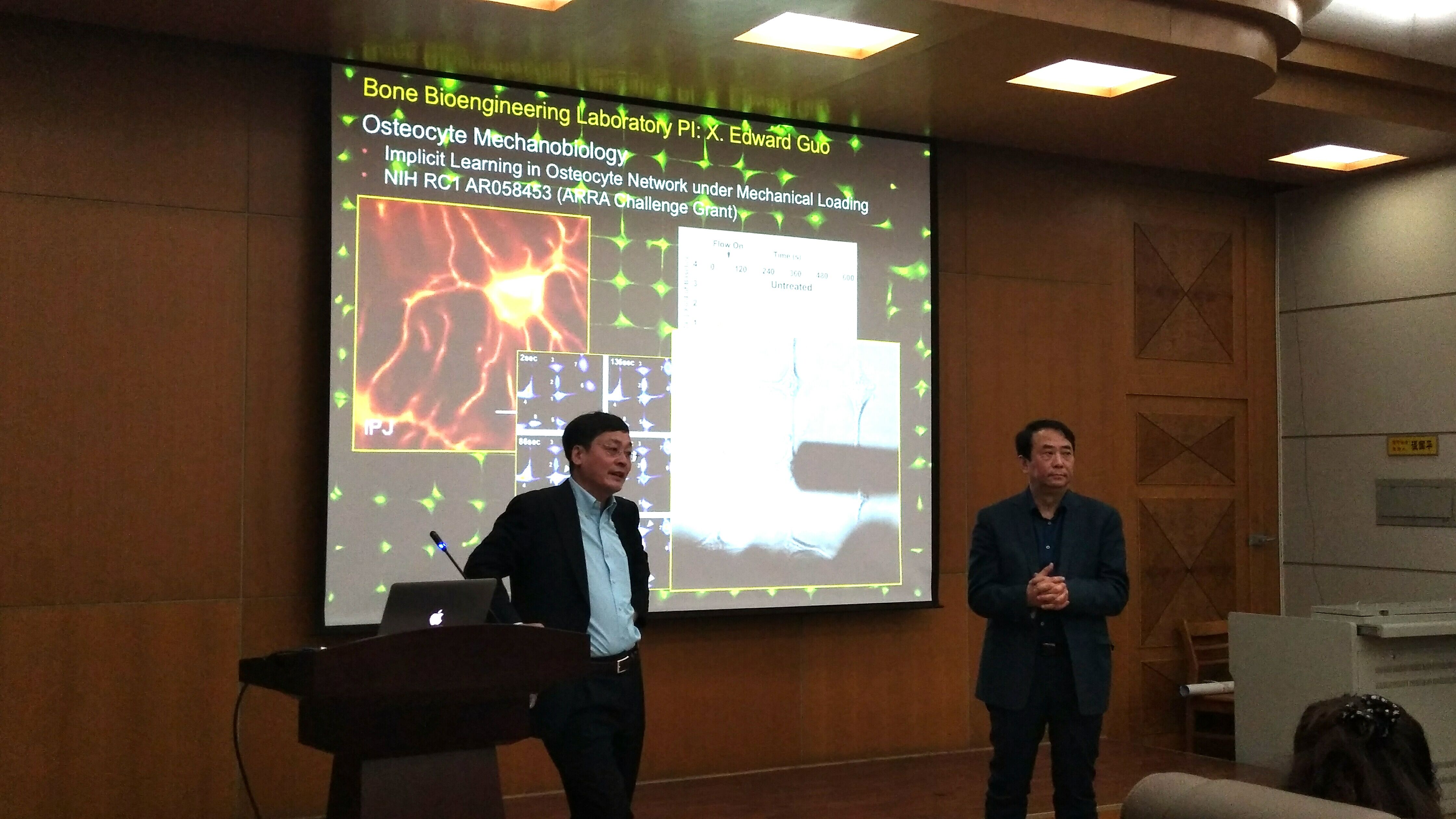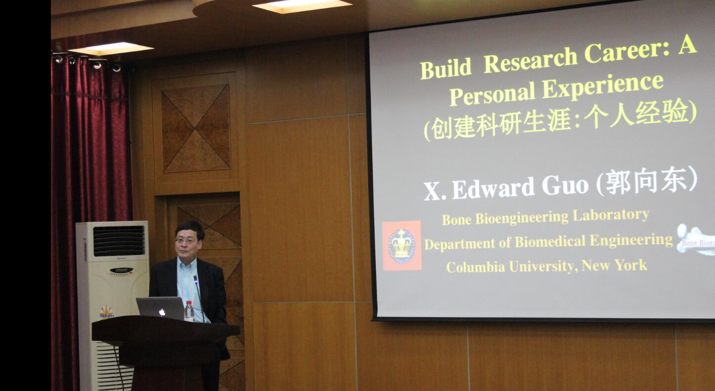 郭向东教授在骨生物力学、骨对力学荷载的适应及其细胞/分子机制、生物组织的计算模型、细胞生物力学、骨微结构的影像学分析、细胞微观影像等领域有众多突出研究成果。曾担任美国力学工程师协会固体力学专业委员会副主席,生物医学生理调节协会主席,国际华人骨研究会主席等职位。荣获美国国家健康学会的国家研究贡献奖、美国国家自然基金事业奖以及2007年中国海外杰出青年奖。主要学术兼职有美国国家生物力学委员会委员,美国骨外科研究协会董事会董事、世界生物力学委员会会员,美国医学及生物工程学院会士,美国医学及生物工程学院董事会董事等。此次郭向东教授及其一行与beat365官网生物物理研究所就开展合作达成了初步意向。