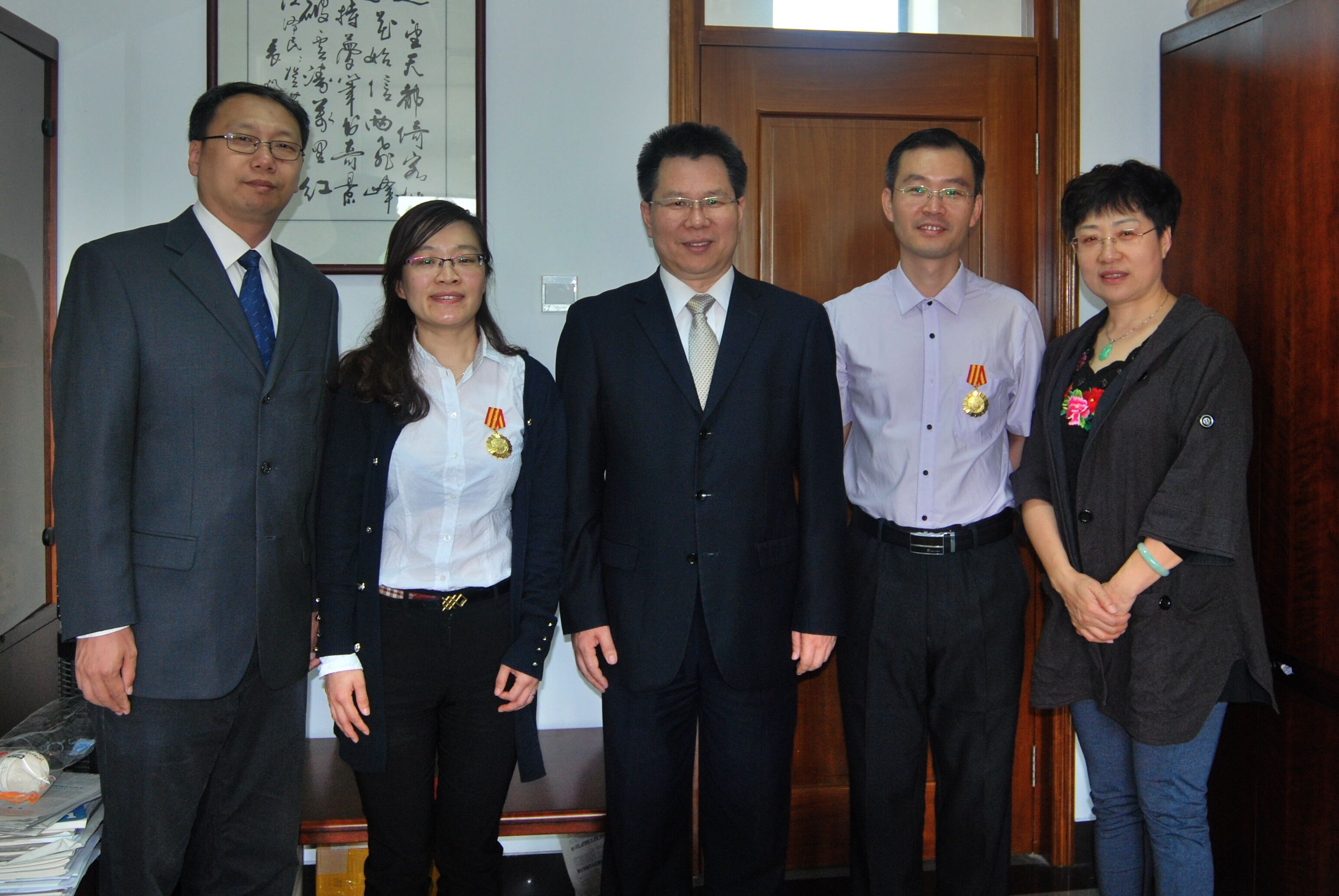 在“五一”劳动节到来之际,beat365官网邢成芬、翟华明两位教师获得2016年度天津市五一劳动奖章荣誉称号, 控制科学与工程学院智能科学与技术系荣获2016年度天津市工人先锋号荣誉称号。4月28日,校党委常委杨玉桢为获奖个人和集体颁发证书、奖牌,佩戴奖章。
