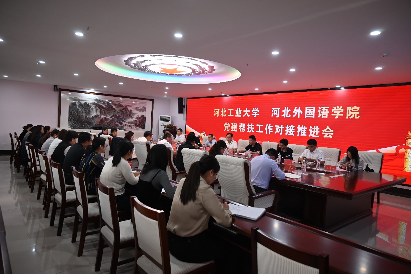 河北外国语学院政教处、宣传部、组织部、统战部、质检处、科技处等部门领导参加了对接交流。