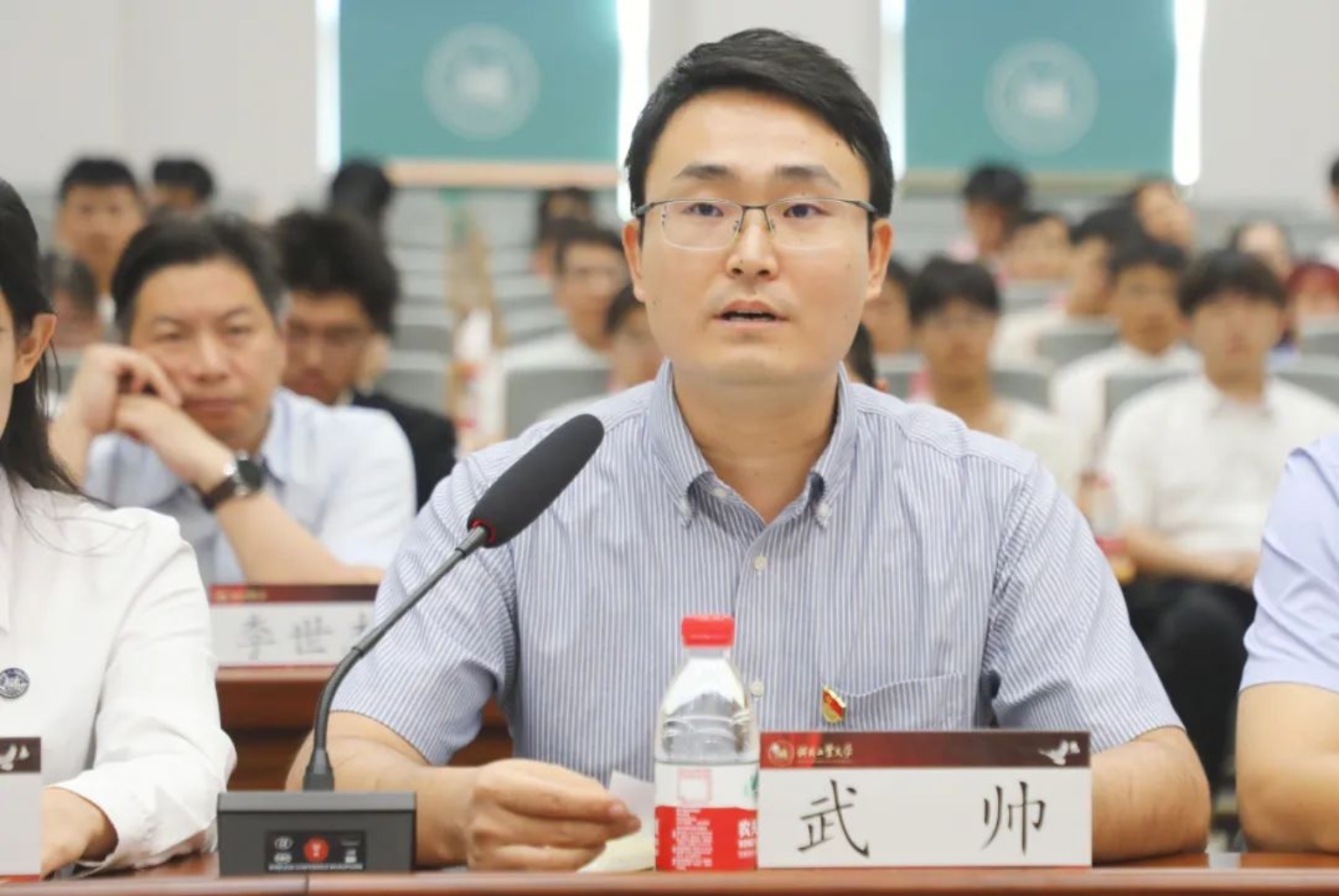 教师代表机械工程学院武帅表示,党的二十届三中全会为我们在教育和科研工作中指明了方向,作为新工科专业的教师,要紧跟时代步伐,优化科教和产教协同育人模式,不断提升教育质量。作为高校的科技工作者,要在科学研究和人才培养中,勇于打破传统学科界限,紧密结合国家的发展战略,做好有组织科研,对学校的科教事业进步做出应有的贡献。