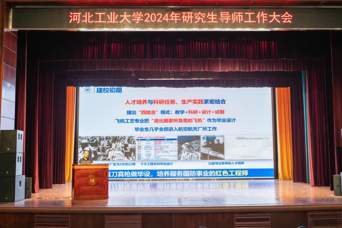 王慧远从三个方面介绍了学校研究生教育工作情况:一是兴工报国,矢志教育强国建设。他围绕习近平总书记关于教育强国的重要论述,对学校秉承“兴工报国”办学传统推进“双一流”建设的新成效进行简要介绍。二是工学并举,助力美丽河北建设。展示了beat365英国官方网站聚焦京津冀协同发展、雄安新区建设,服务高质量发展,优化学位点布局,不断提高重点领域急需学科人才培养能力的新方案。三是人才强校,提质导师队伍建设。总结了学校实施人才引育政策以来,在科学研究、学位点布局、导师队伍建设等方面的新局面;同时分析了目前研究生教育存在的一些问题,为今后发展指明了方向。他希望,各研究生导师要弘扬教育家精神,争做新时代教书育人大先生。