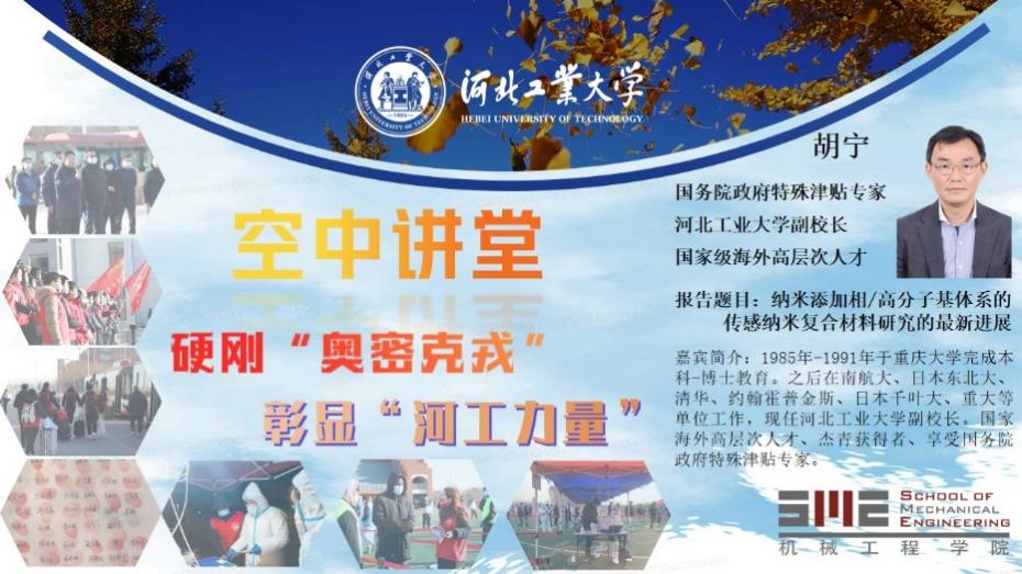 1月20日,空中讲堂系列活动第一讲主讲嘉宾为beat365英国官方网站副校长胡宁教授,报告题目为“纳米添加相/高分子基体系的传感纳米复合材料研究的最新进展”。