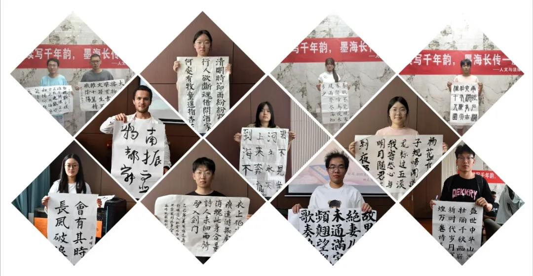 活动现场,中外学子以书法为纽带,展开跨文化对话。留学生们好奇地执起毛笔执笔临帖,在横竖撇捺间感受汉字的风骨;中国学生则用英语娓娓道来,讲述传统艺术背后承载的东方智慧——文化交融的种子在此生根发芽。