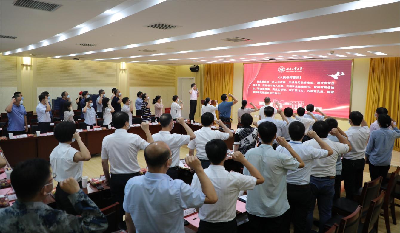 “我志愿成为一名人民教师……”座谈会在庄严的宣誓声中开始,贺立军带领全体参会教师重温《人民教师誓词》,回顾初为人民教师的光荣时刻,铭记一名人民教师的誓言与承诺,坚守立德树人初心、担当教书育人使命。