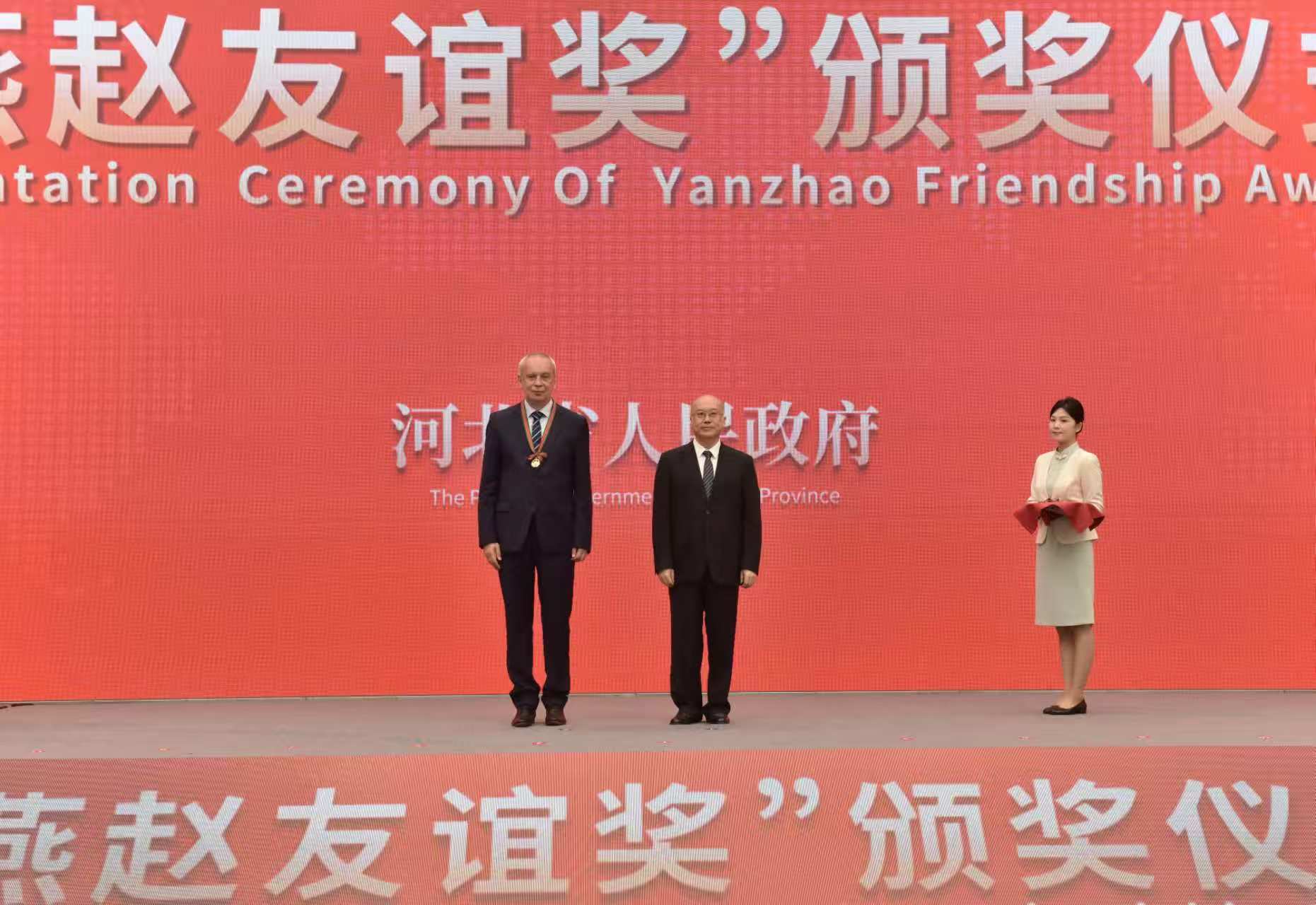 “燕赵友谊奖”是河北省人民政府授予外国专家的最高荣誉,每两年评选一次,旨在表彰为河北科技创新与经济社会发展作出突出贡献的外国专家。