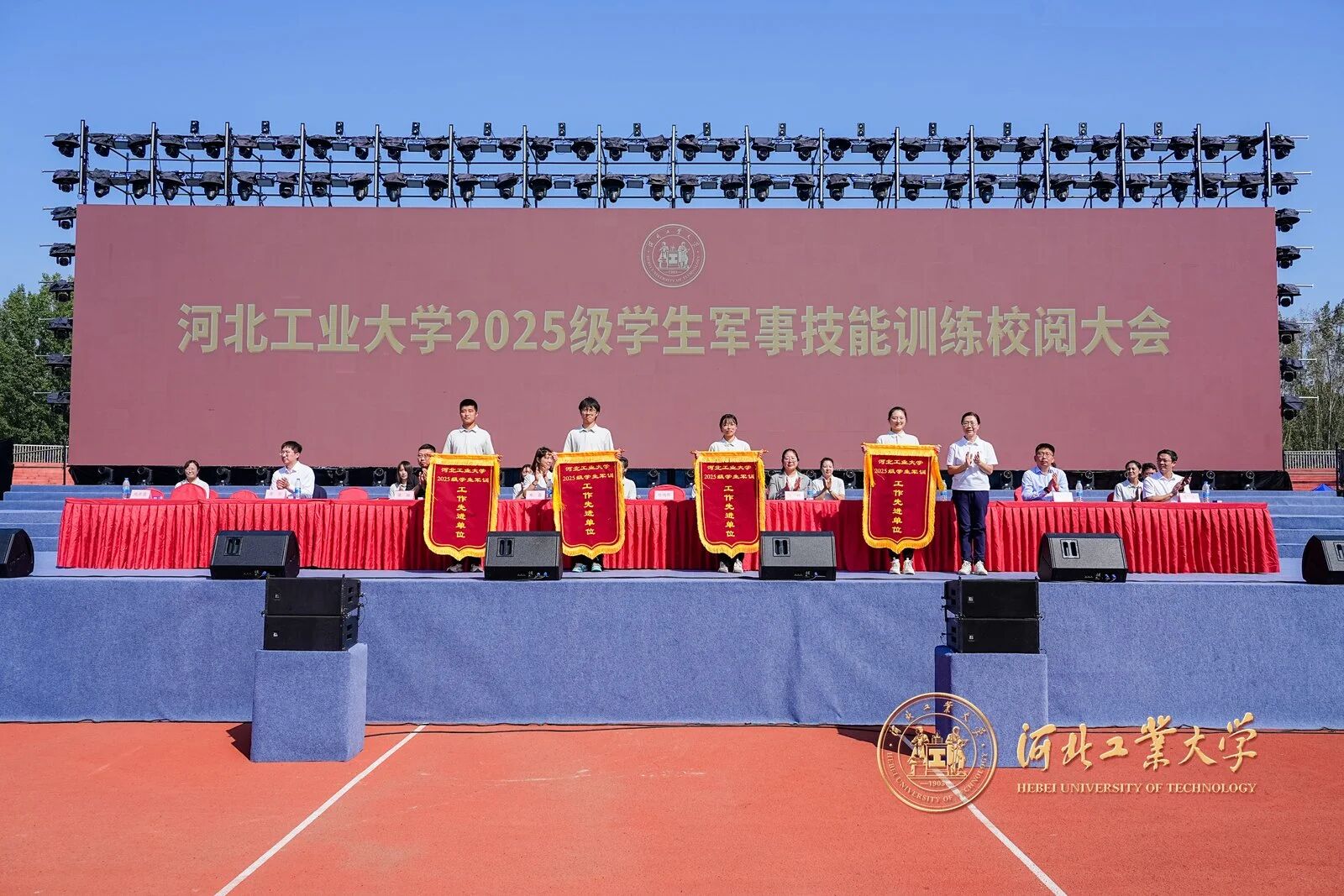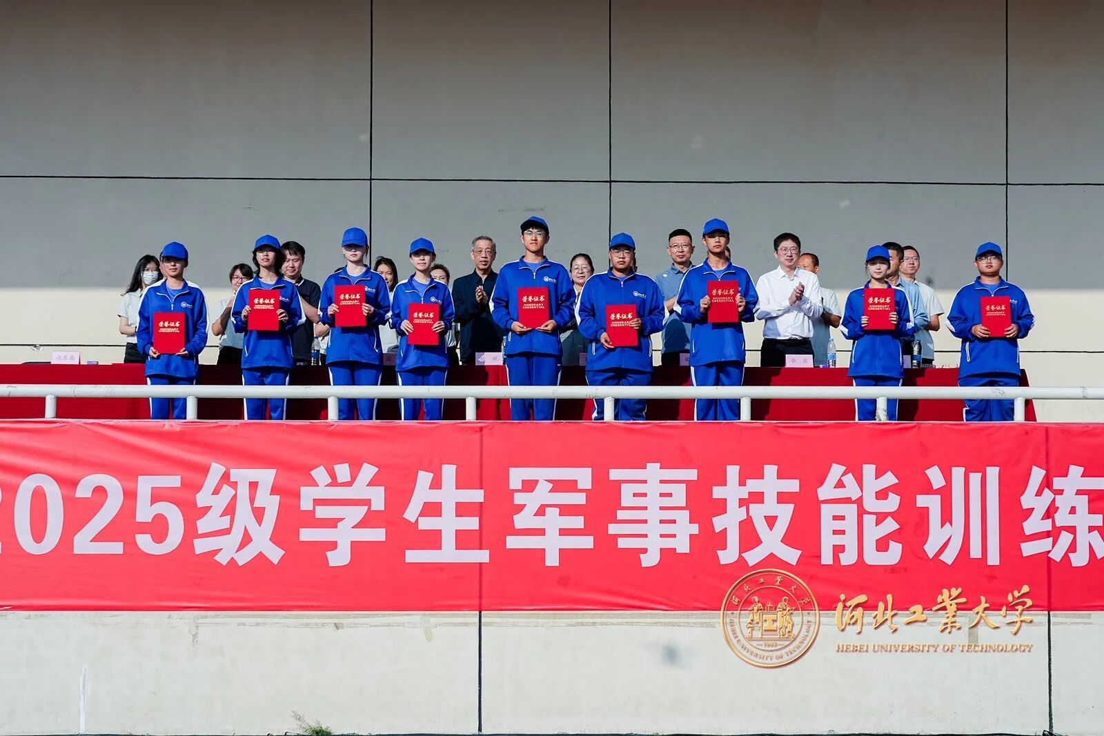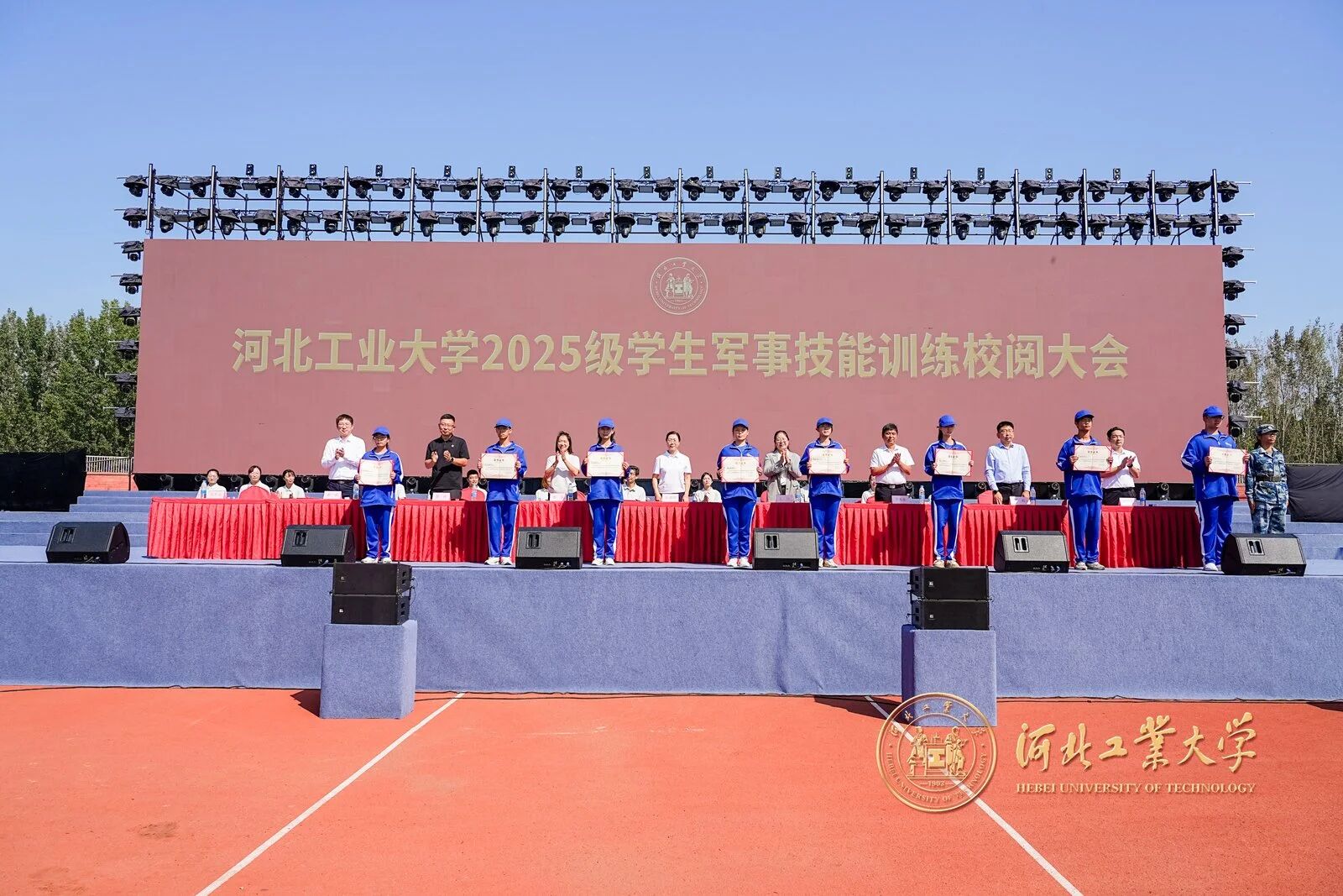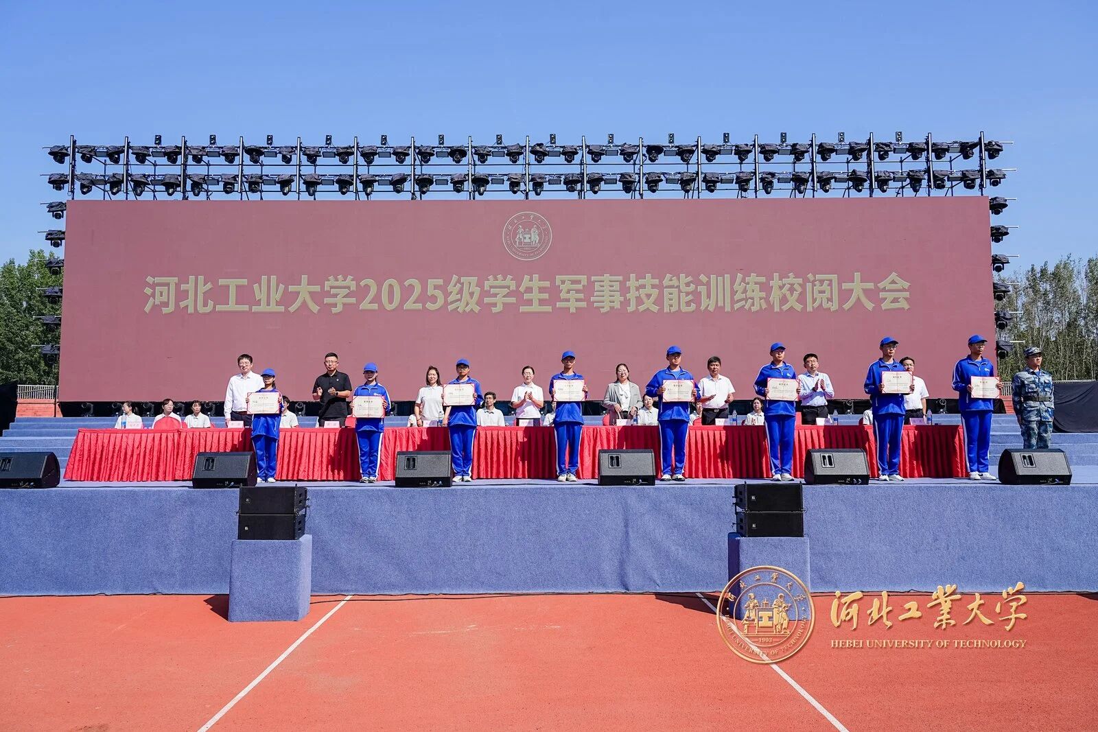 精彩的汇报表演后,校领导依次为2025级军训内务整理优秀宿舍、2025级军训标兵、2025级军训工作先进单位代表颁奖。