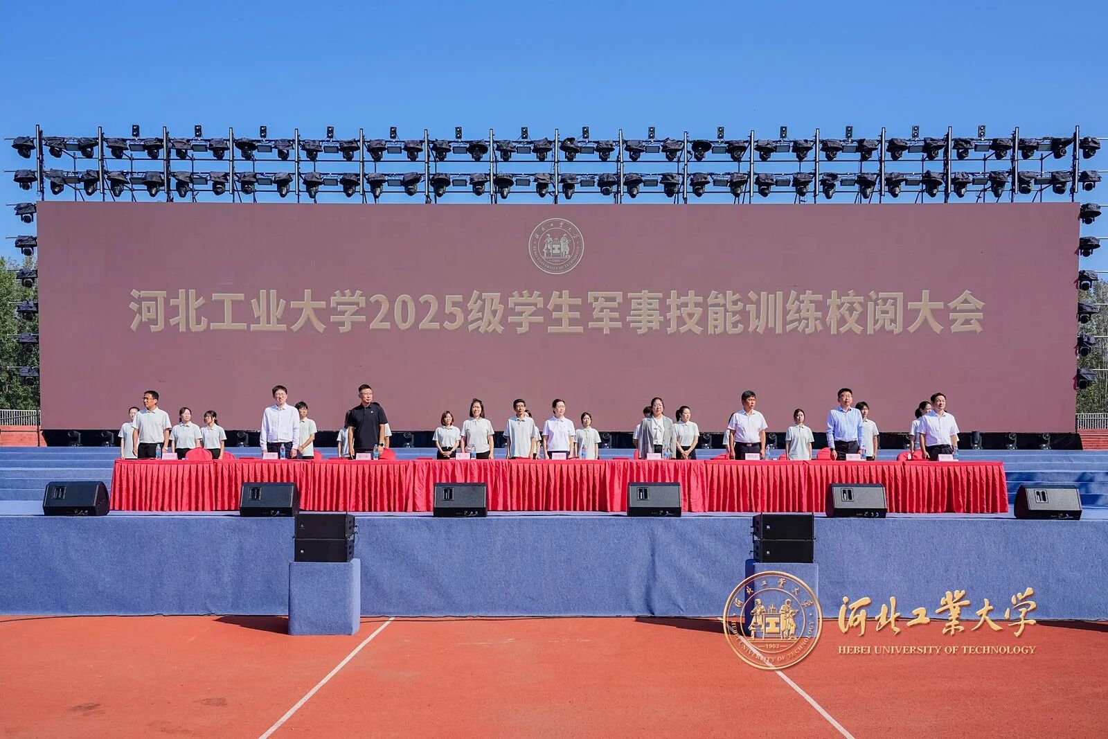 风拂征衣秋意爽,军姿如柏气轩昂。9月20日上午,beat365英国官方网站2025级学生军事技能训练校阅大会在红桥校区东院操场与北辰校区体育中心相继举行。校党委副书记赵斌,校党委常委、副校长陈鸿雁出席大会。校内各单位、部门负责同志,各学院军训工作领导小组负责人、承训教官、2025级学生辅导员和2025级全体本科生参加大会。