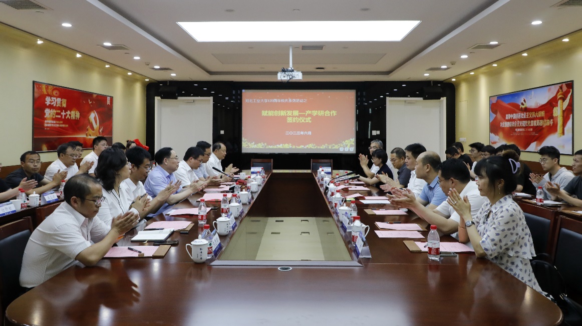 6月17日上午,赋能创新发展—产学研合作签约活动在北辰校区图书馆会议室举行。河北省科技厅成果处副处长仲永安,衡水市冀州区委书记张洪涛、副区长刘明策,鄂尔多斯市浙科新材料有限责任公司总工程师曹其若,副校长马国伟出席签约仪式。