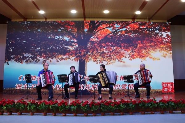 荣休仪式上,退休教师舞蹈团表演了精彩的舞蹈《阿里郎》。她们身着传统服饰,翩翩起舞,用优美的舞姿展现了对生活的热爱和对教育事业的眷恋。老年大学朗诵班的老师们深情朗诵了《杏花春雨,师爱不已》,声情并茂地表达了对教育事业的执着追求和对学生的深厚情感,让在场的每一个人深受感动。校团委艺术团青年教师郑颖独唱《老师,我总是想起您》,用歌声传递了对教师的敬意和感恩之情,将现场气氛推向高潮。老年大学手风琴班的合奏《山楂树》更是增添了一份温馨与浪漫,熟悉的旋律在建友厅内回荡,勾起了在场教师们对往昔岁月的回忆。