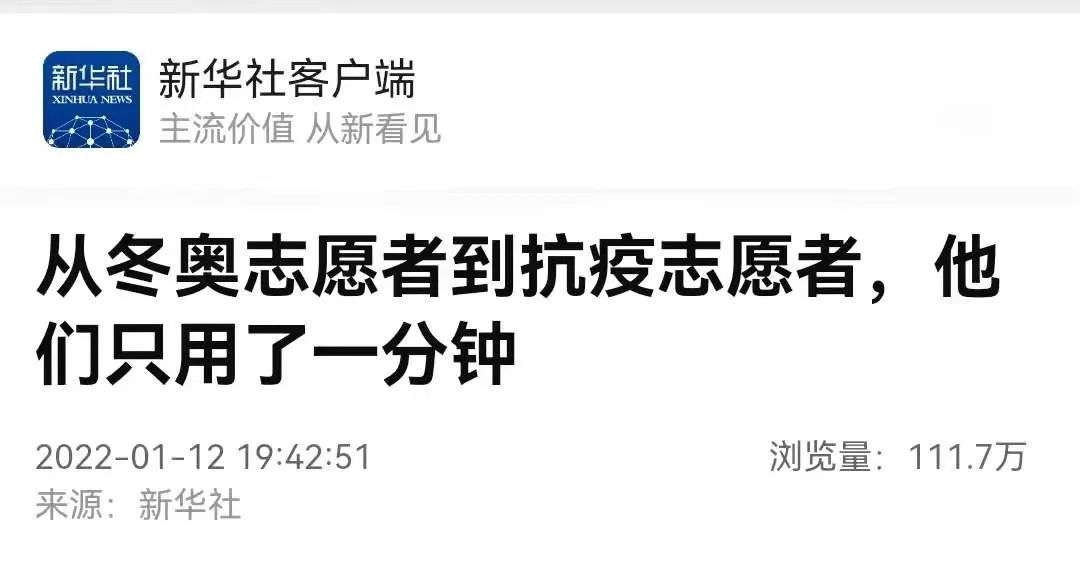 就完成从冬奥志愿者到抗疫志愿者的转变