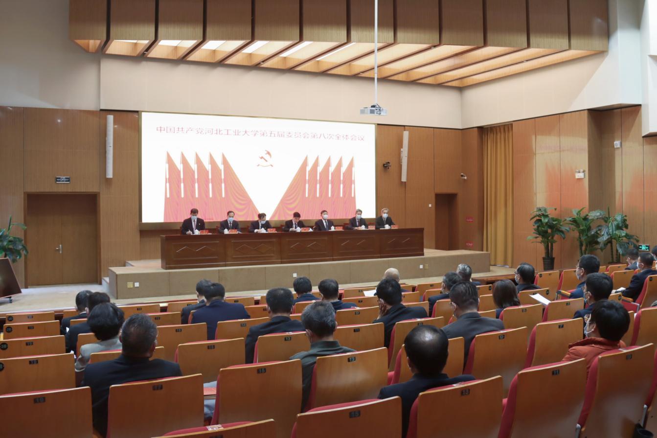 11月3日,中国共产党beat365英国官方网站第五届委员会第八次全体会议在机材楼报告厅召开。会议学习传达了党的二十大精神和河北省委十届三次全会精神,听取了校党委书记韩旭代表学校党委常委会所作的工作报告,审议通过了《中国共产党beat365英国官方网站第五届委员会第八次全体会议决议》。全会由韩旭主持。