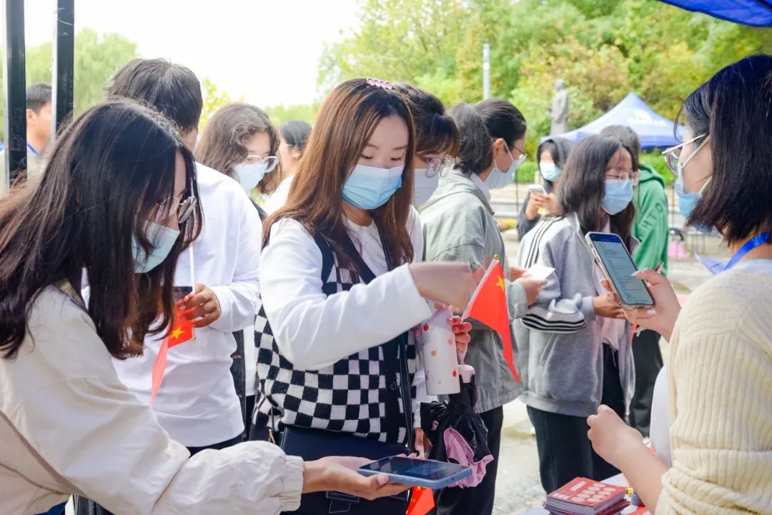 在九处打卡地,“红心铸魂”学生理论宣讲团于整点时刻开展总书记考察故事的主题宣讲,带领同学们走进总书记同人民在一起的故事,共同感受他至深至厚的人民情怀。红心铸魂学生理论宣讲团同步开展“云端宣讲”,宣讲员为每一块展板录制了宣讲音频,参观者只需扫描展板二维码即可随时聆听总书记在相应城市的考察故事,在声声句句中体会着总书记对人民的关切,从总书记的足迹中汲取奋力前行的磅礴力量,奋力走好新时代的“赶考之路”。