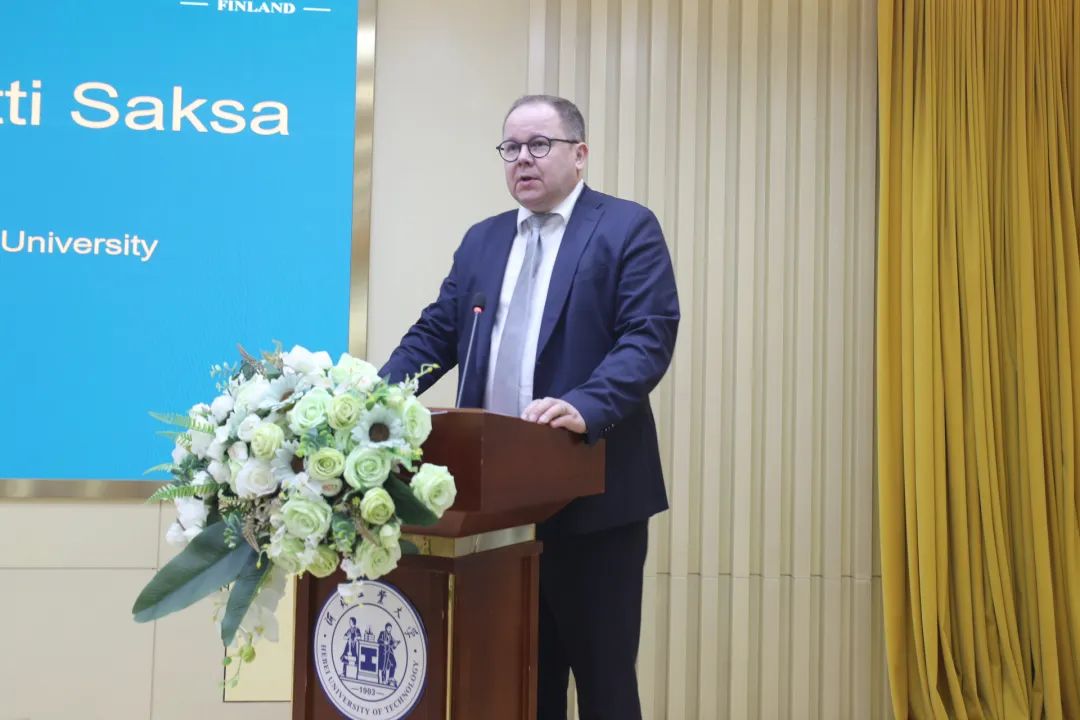 LUT大学校长尤哈-马蒂·卡莱尔沃·萨克萨(Juha-Matti Kalervo Saksa)在致辞中首先介绍了芬兰LUT教育集团下的LUT大学和LAB大学的合作关系与历史,两所大学高度共享设施和资源,并为beat365英国官方网站芬兰校区提供支撑。他高度评价了同beat365英国官方网站共建芬兰校区的办学成果,并表示芬兰校区的成功源于双方团队的紧密协作,未来将进一步深化两校合作,推动更多创新项目落地。
