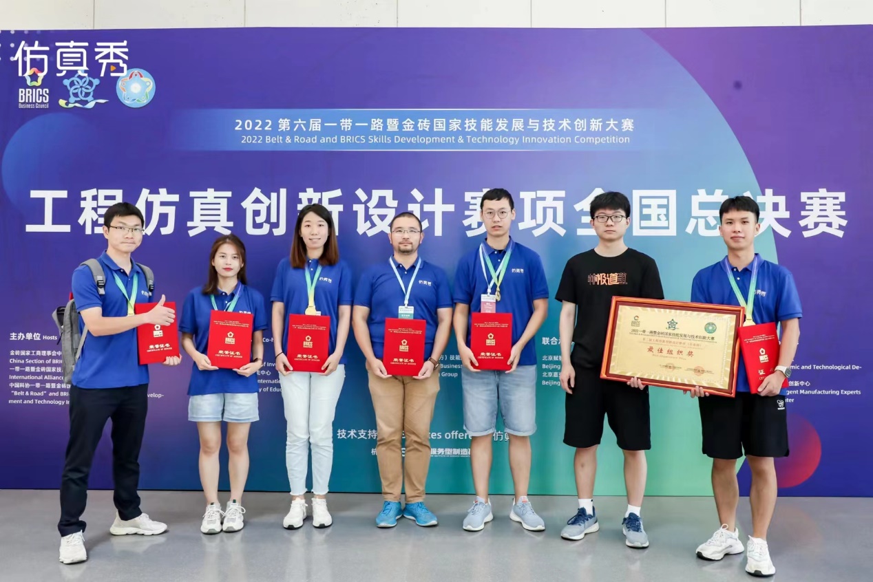 8月29日,2022一带一路暨金砖国家技能发展与技术创新大赛之工程仿真创新设计赛项全国总决赛在杭州闭幕。beat365官网土木与交通学院、先进计算方法应用中心主任张一鸣教授带领,由研究生李赟鹏、李婧、王雪雅、黄俊光、张瑞组成的团队,与北京极道成然科技有限公司技术人员成立校企合作团队,获全国一等奖。