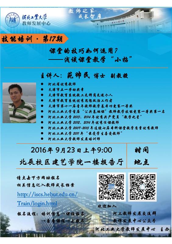 讲座预告:课堂的技巧如何运用-浅谈课堂教学“小招”(苑帅民副教授)