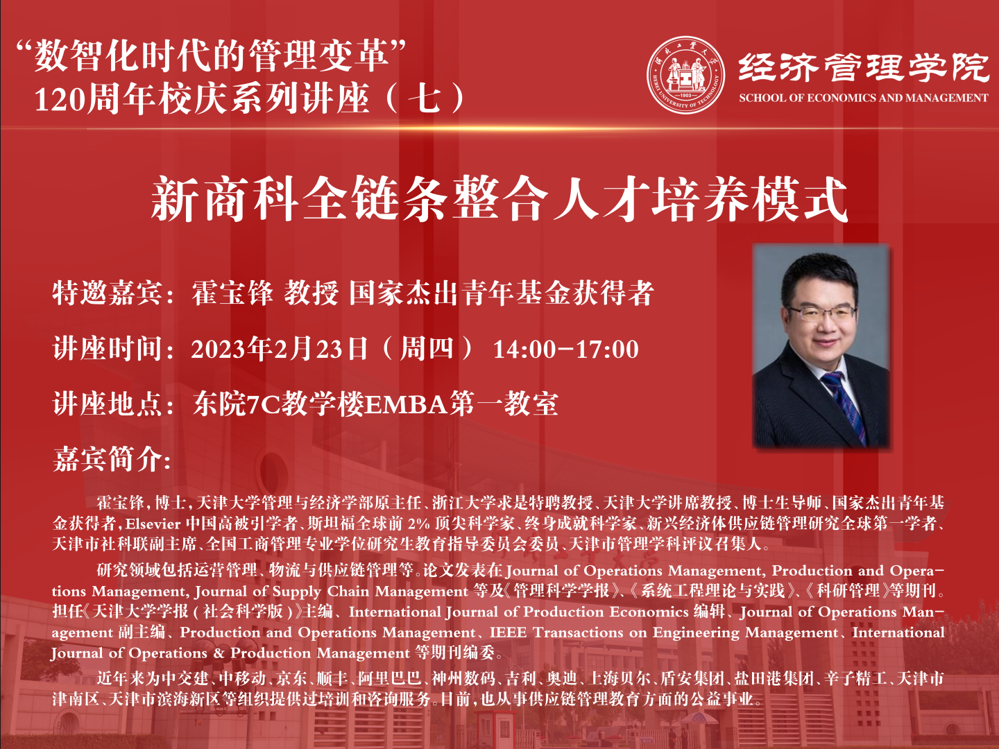 学术报告:“数智化时代的管理变革”120周年校庆系列讲座(七)新商科全链条整合人才培养模式
