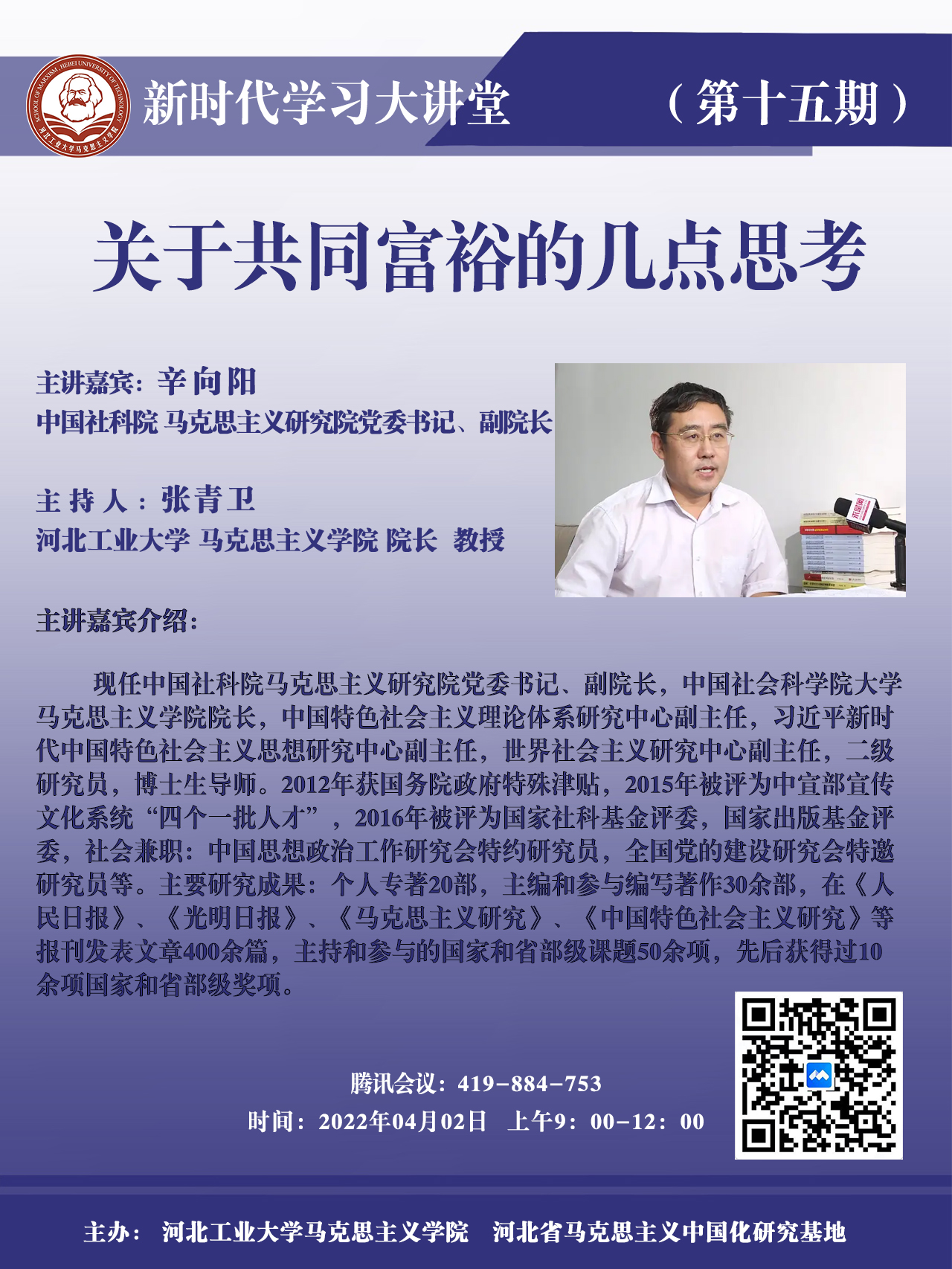主 讲 人:辛向阳教授,中国社科院 马克思主义研究院党委书记、副院长