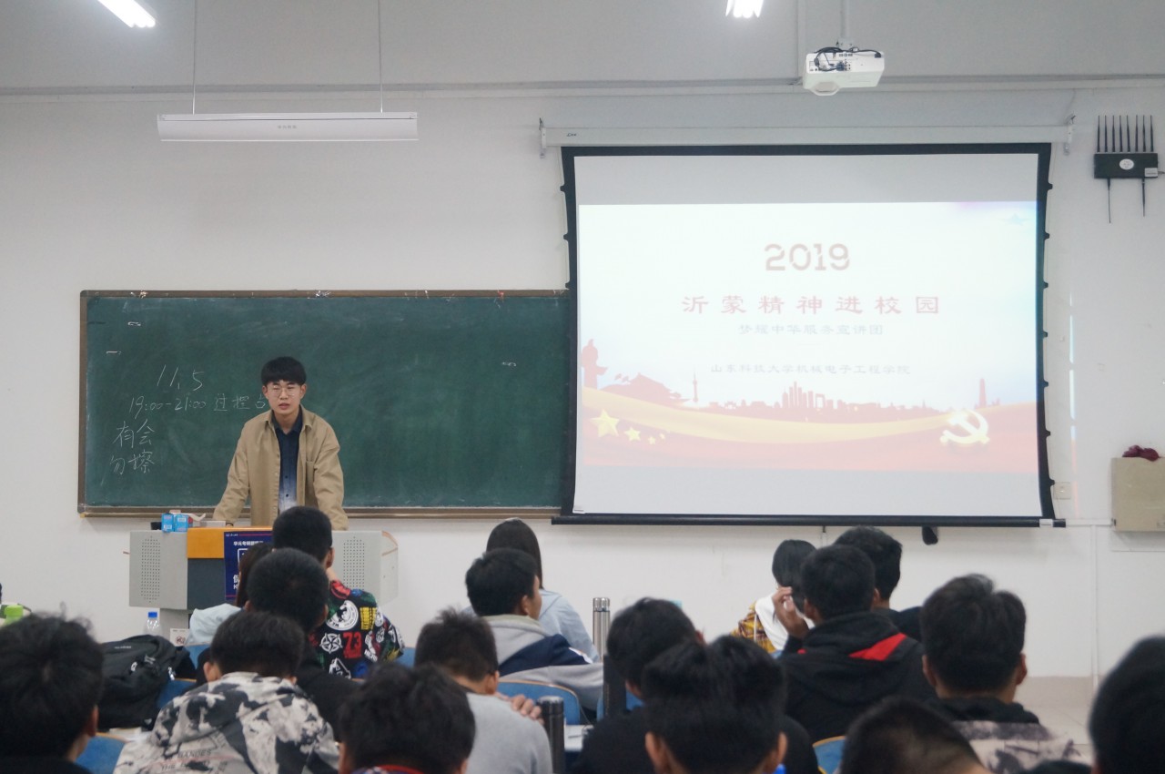 点击:11月3日-11月8日,在新中国成立70周年之际,为加强爱国主义教育,大力弘扬“沂蒙精神”,金年会官网开展了“沂蒙精神进校园”红色文化宣讲活动。此次宣讲活动由梦耀中华服务宣讲团主讲,金年会官网2019级5个专业共530余名同学参与。