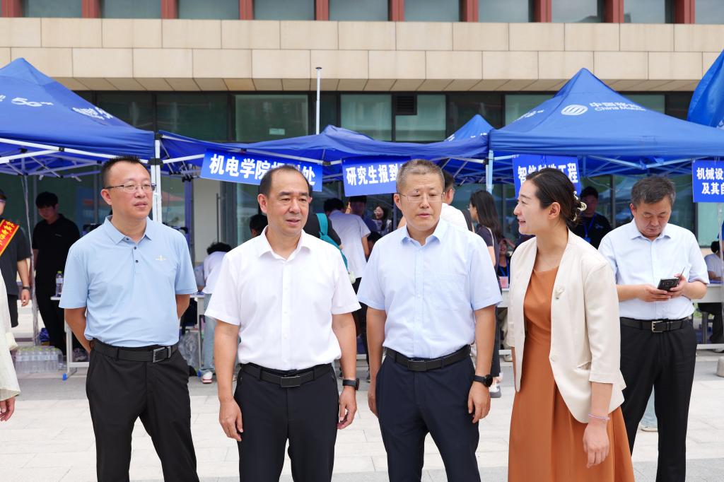 在迎新期间,校党委书记王君松、校长曾庆田以及相关部门领导来到学院迎新点,学院领导汇报迎新工作进展情况,并就学院“‘五’力赋能仪式”“科技展示处”等特色迎新项目进行介绍。学校领导高度肯定了金年会官网近年来在学生科创方面取得的成就,并对学院新生寄予了更高的期待。