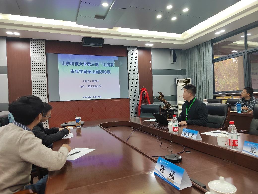 点击:山海泉”青年学者泰山国际论坛金年会jinnianhuicom分论坛于11月21日下午15:00在金年会jinnianhuicom204会议室顺利召开。分论坛采取线上线下相结合的方式召开。来自英国牛津大学、南安普敦大学、萨塞克斯大学,比利时鲁汶大学,荷兰格罗宁根大学,日本东京大学,新加坡南洋理工大学,澳大利亚悉尼科技大学,香港城市大学,澳门大学,上海交通大学,西北工业大学等30余所高校、科研院所的70余位参加了论坛交流活动。学院党委书记陈猛、院长助理苏金鹏、人事秘书李晨鸣及20余位青年教师、博士生代表参加会议。