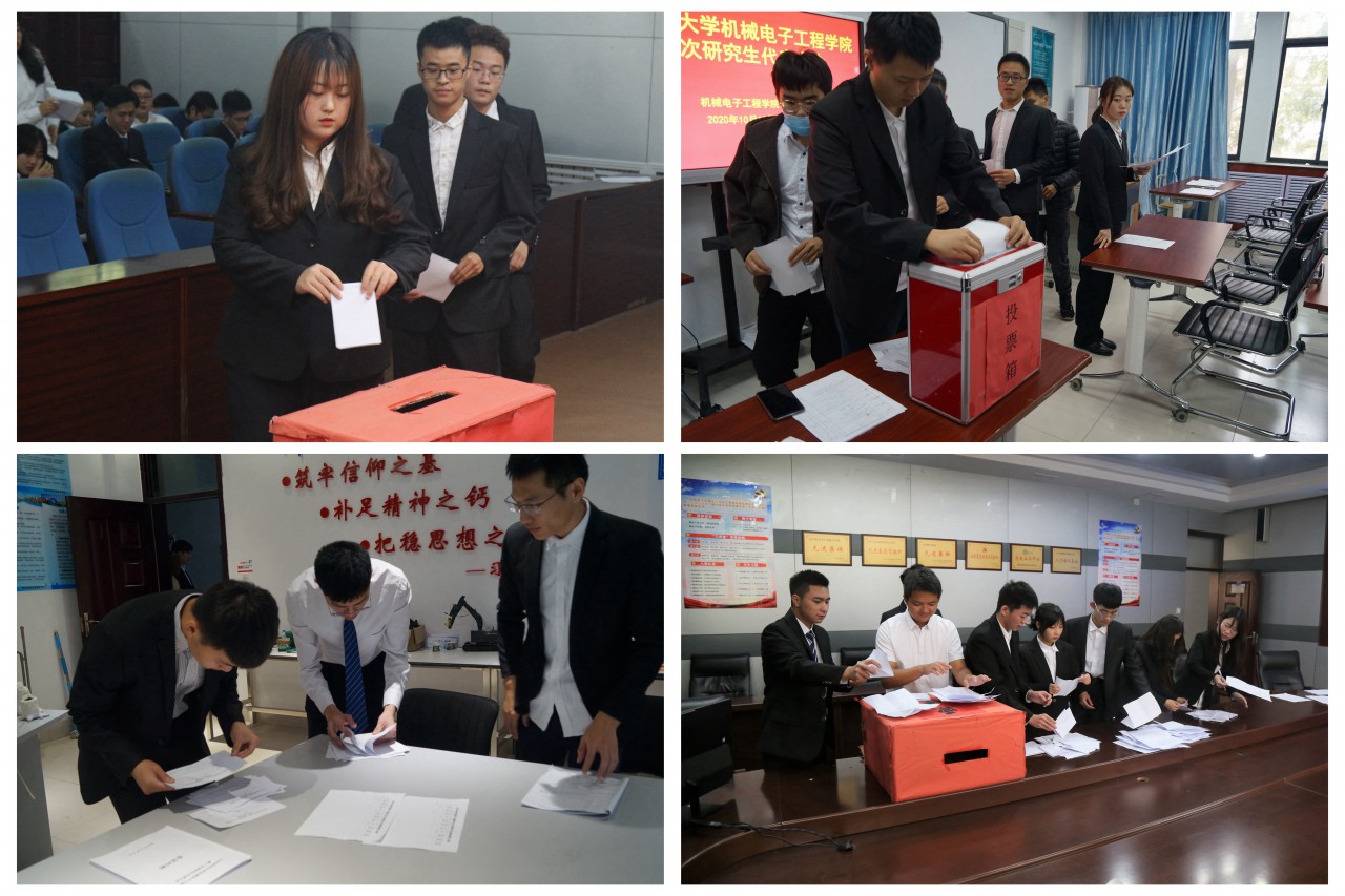 期间,大会预备会议、各代表团会议、主席团会议在充分酝酿、讨论的基础上,通过了选举办法,通过了大会总监票人、监票人,通过了大会总计票人、计票人,选举通过了机械电子工程学院新一届学生会主席团成员候选人名单、机械电子工程学院新一届学生会主席团名单、机械电子工程学院第三次学代会常任代表名单,选举通过了金年会jinnianhuicom新一届研代会主席团成员候选人名单、金年会jinnianhuicom新一届研究生会主席团名单、金年会jinnianhuicom第一次研代会常任代表名单。