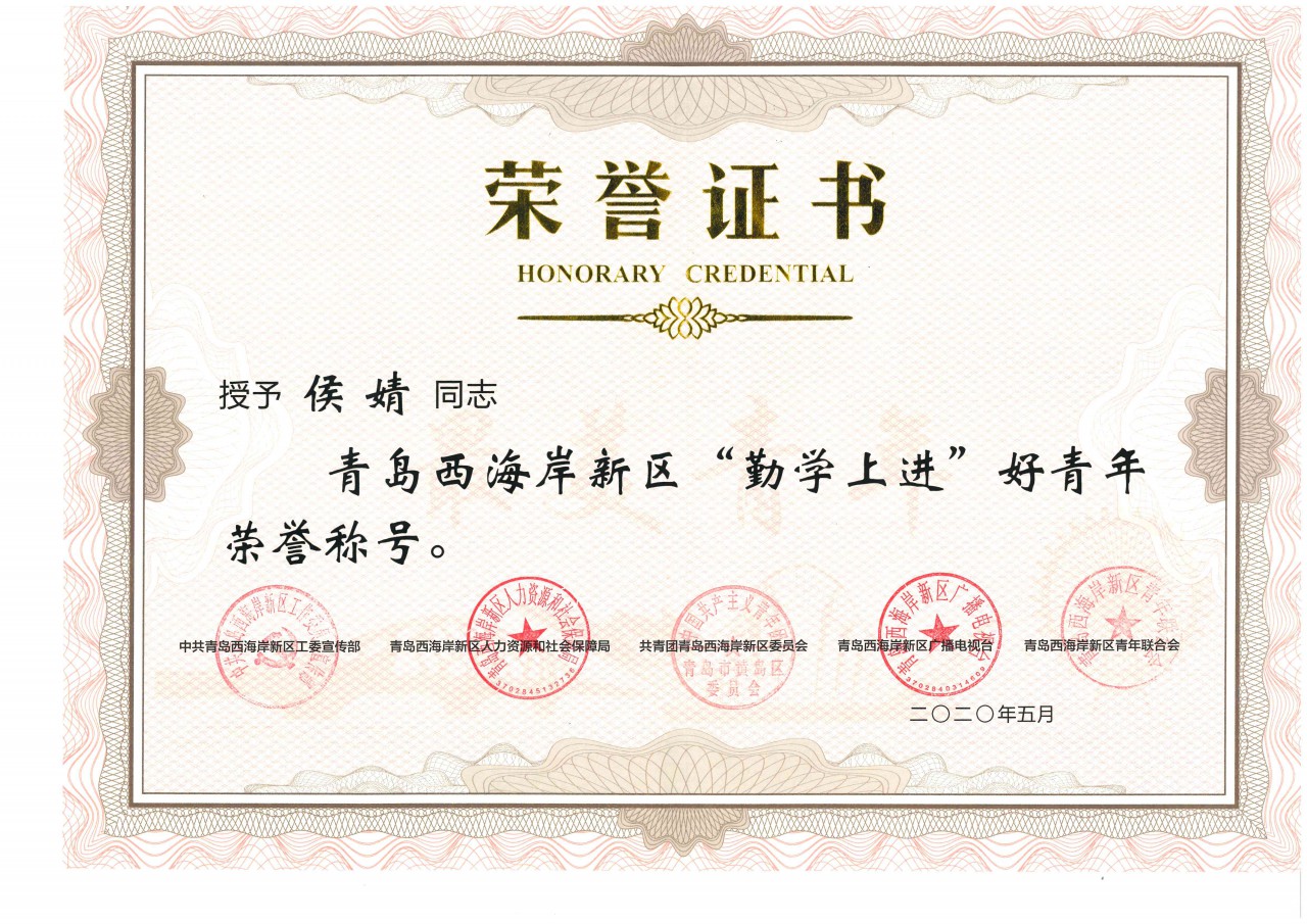 点击:日前,由工委宣传部、区人力资源和社会保障局、区广播电视台、团区委、区青年联合会共同开展的“新区最美青年”评选活动结果揭晓,金年会官网学生侯婧荣获青岛西海岸新区“勤学上进”好青年荣誉称号。