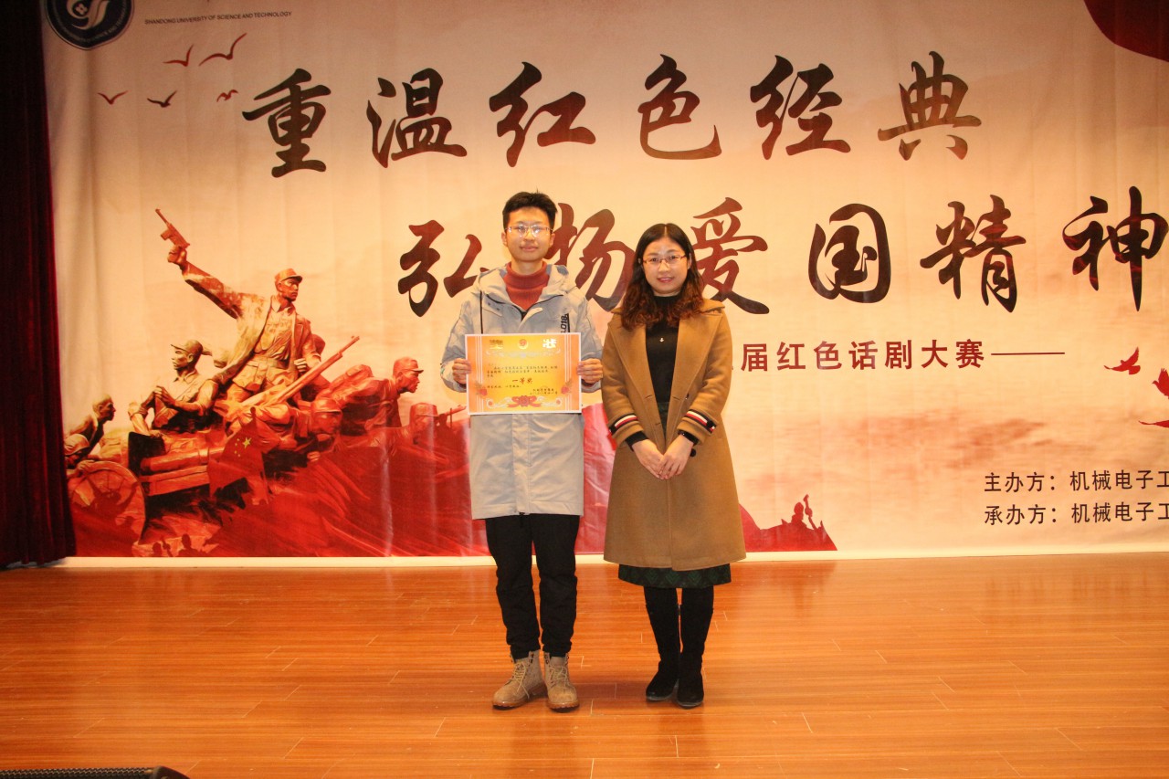 点击:为加深大学生对红色文化的认识,厚植爱国主义情怀,营造爱党爱国爱校的良好氛围,喜迎建校70周年华诞,11月29日,金年会官网在大学生活动中心报告厅举办第五届“重温红色经典,弘扬爱国精神”红色话剧大赛。校团委组宣部部长耿倩,金年会官网团委书记樊玉华,辅导员杨治宽,学生代表程龙、许楠、崔龙飞出席本次大赛并担任评委。