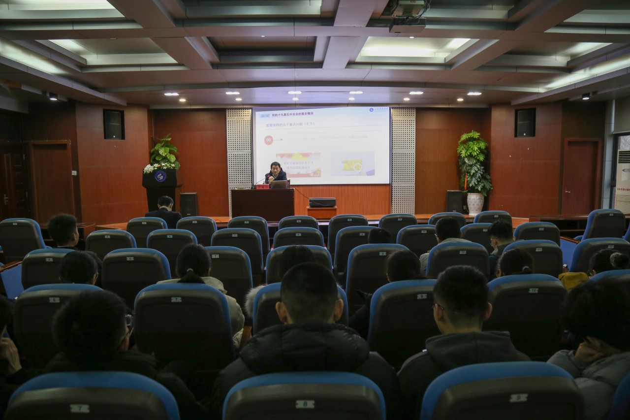 点击:为深入学习贯彻党的十九届五中全会精神,12月11日下午,教务处副处长樊建聪在学院报告厅为我院2019级联系班级学生宣讲党的十九届五中全会精神,辅导员宋阔出席本次会议。
