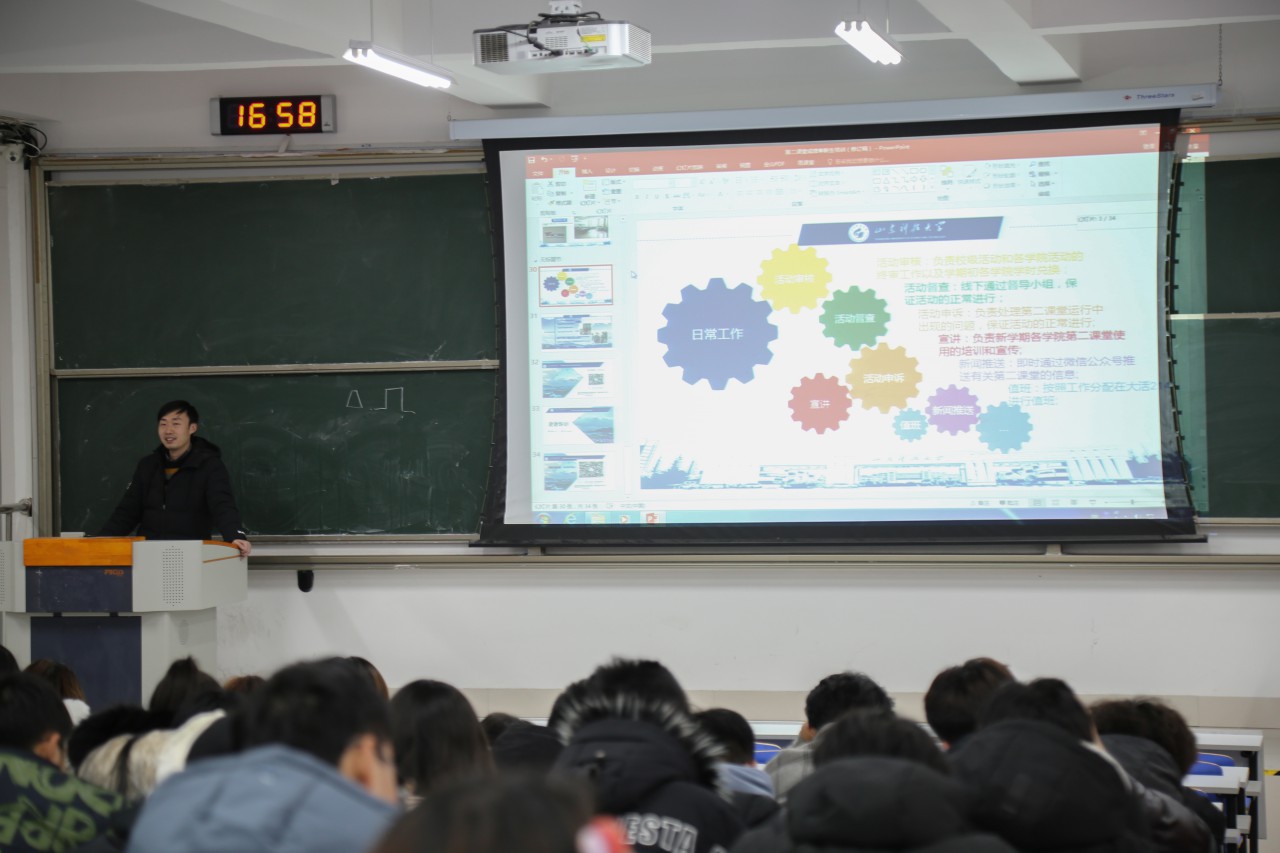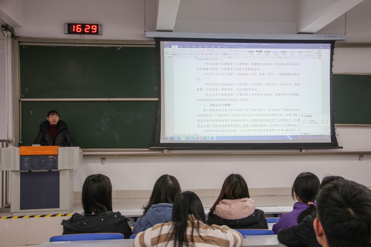 点击:12月17日下午,金年会官网在J14-421、423举办青年马克思主义者培训班第一讲,金年会官网辅导员祝月盈、宋阔担任主讲人,讲解《第二课堂成绩单实务》,2020级全体学生参加培训。 培训会上,祝月盈、宋阔围绕第二课堂活动的意义和作用,第二课堂成绩单的课程设置、学时认定与管理、如何发起、学院第二课堂工作站相关工作内容,PU口袋校园的使用方法向同学们介绍第二课堂相关内容,重点讲解了各类课程的学时数要求、第二学期兑换学时应注意的方面。老师们表示,第二课堂是发展特长、塑造个性的重要方式,要注重在第二课堂活动中锻炼能力、提高素质,充分发挥第一课堂和第二课堂的补充配合作用。 本次培训使2020级学生更加明确了第二课堂的意义与作用,加深了同学们对“PU口袋校园”的了解,进一步推动学院第二课堂制度的建设与工作落实。(通讯员:祝月盈 摄影:韩开睿、吴昊天)