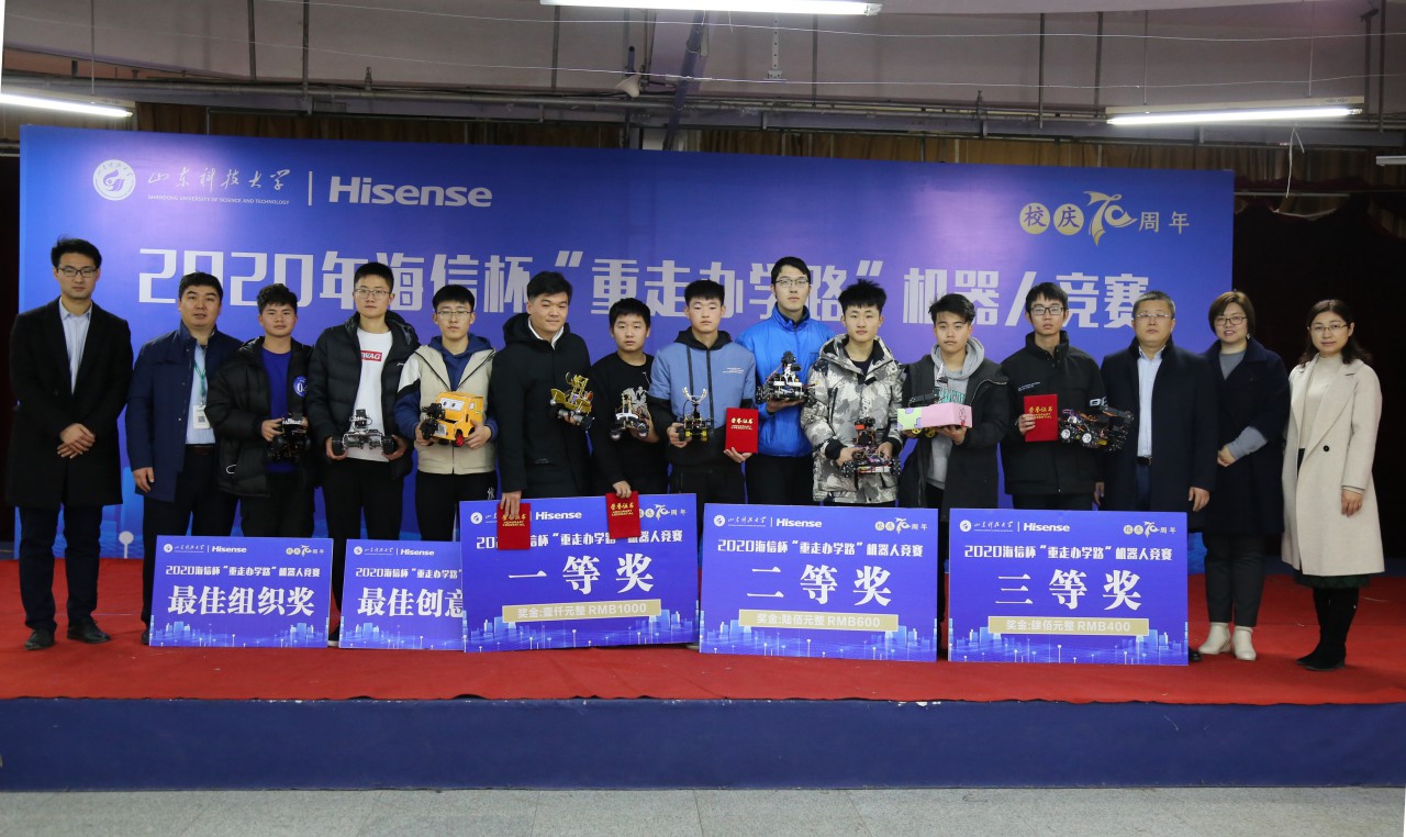 点击:为增强大学生科技实践能力,营造了解校史、爱校荣校的校庆氛围,12月20日上午,由共青团金年会诚信信誉至上委员会主办、金年会jinnianhuicom承办的海信杯“重走办学路”机器人竞赛,在大学生活动中心一楼报告厅隆重举办。海信视像科技股份有限公司制造中心副总经理安玉江一行、校团委副书记马鹤、金年会官网党委副书记陈猛出席比赛现场,学院团委书记樊玉华主持开幕式。