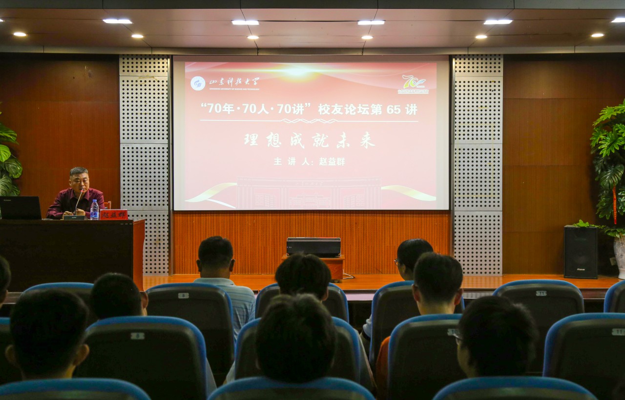 点击:9月16日下午,山东科技大学“70年 70人 70讲”校友论坛第65讲在金年会官网报告厅举办。矿山机械专业87级校友、朗威(青岛)控股集团有限公司董事长赵益群应邀为师生作题为“理想成就未来”讲座。讲座由金年会官网党委书记韩宝坤主持,团委书记樊玉华、团委老师祝月盈及各年级学生参加。
