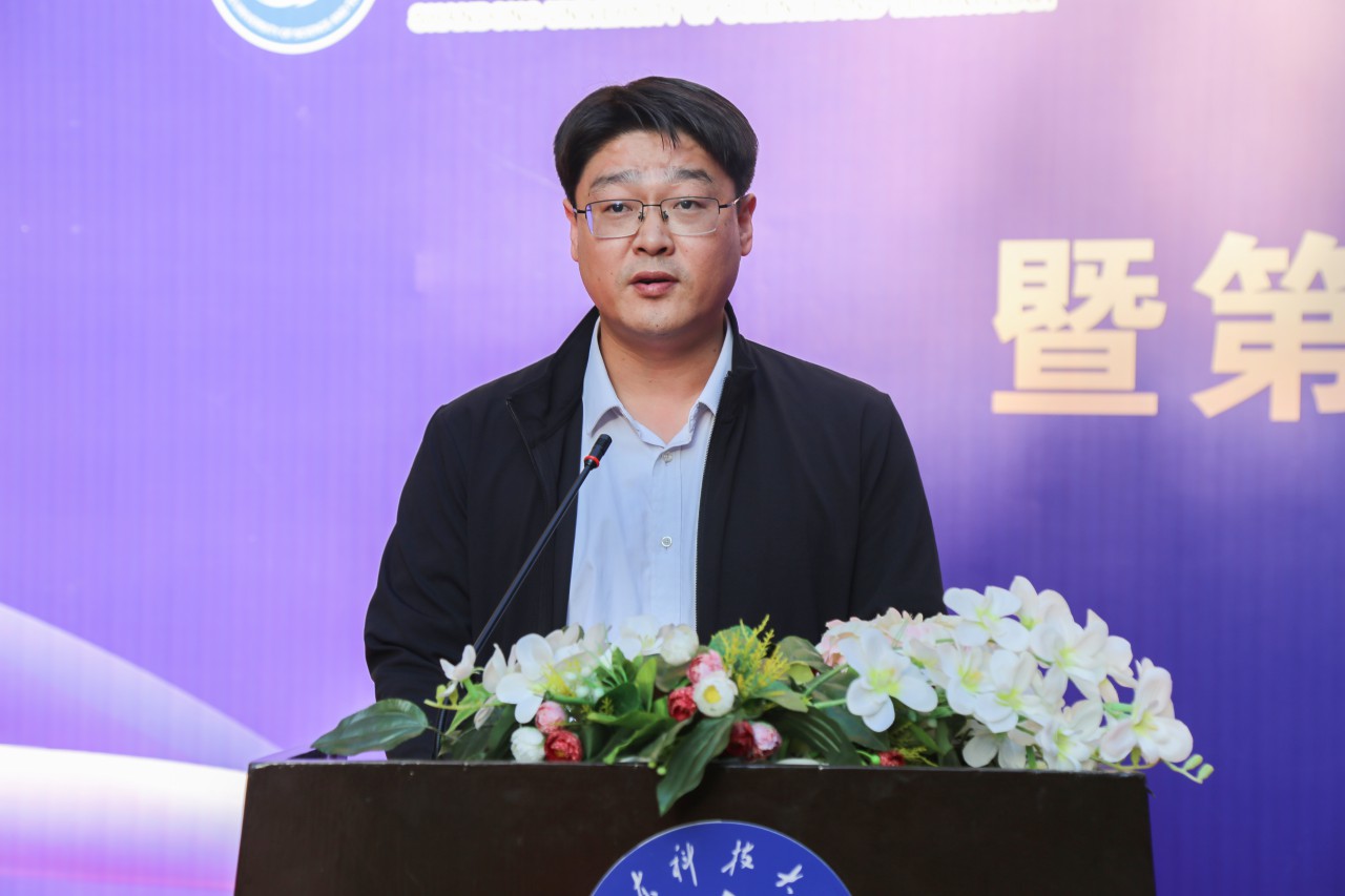 韩宝坤致开幕词,介绍了金年会官网2021年度科创成果展和第二届“寻找合伙人”大学生科创项目双选会的开展情况。