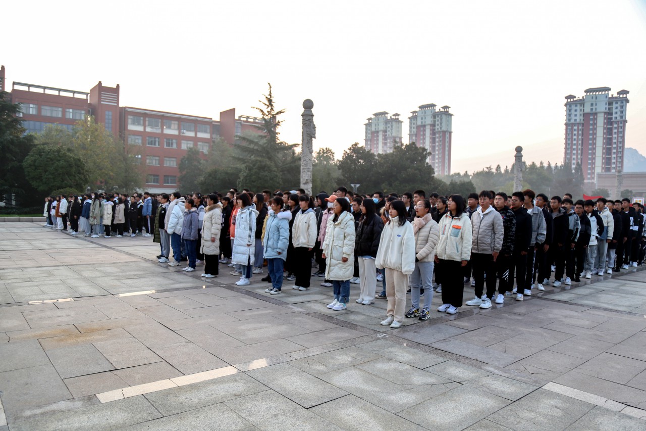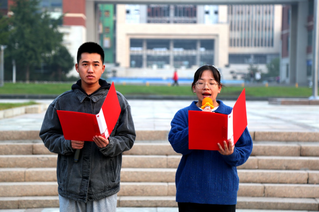 升旗仪式后,学生代表在国旗下诵读革命先烈“十一书”。十月清晨,学生代表在晨光中的诵读声情并茂,让同学们了解了赵一曼、夏明翰、陈毅安等革命先烈的英雄故事,领略到了他们用生命书写忠诚、用鲜血捍卫信仰、用热血滋养中国的无我精神。深秋天寒,但每个人内心都热血沸腾。在场的师生仿佛身临其境,感受到了当年先烈们的无畏与伟大,并向他们致以最崇高的敬意。