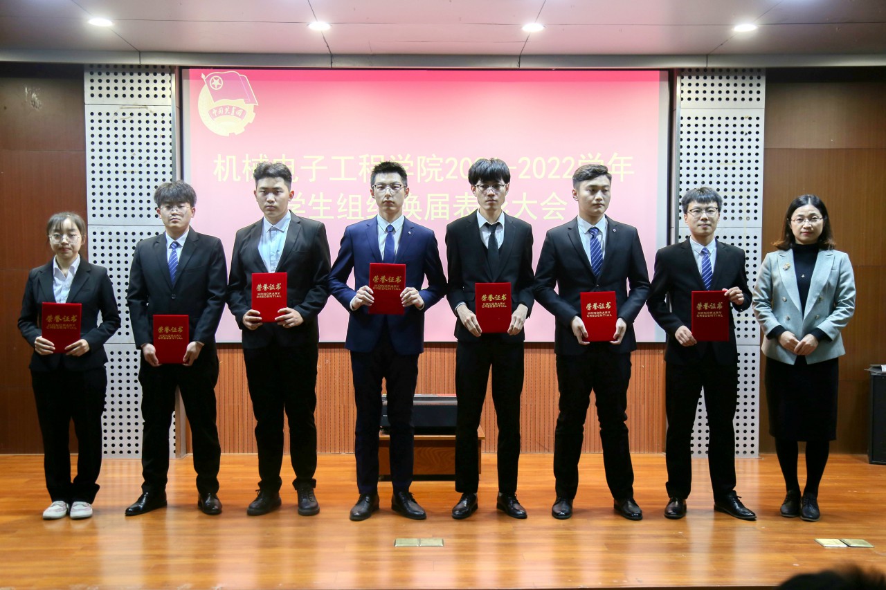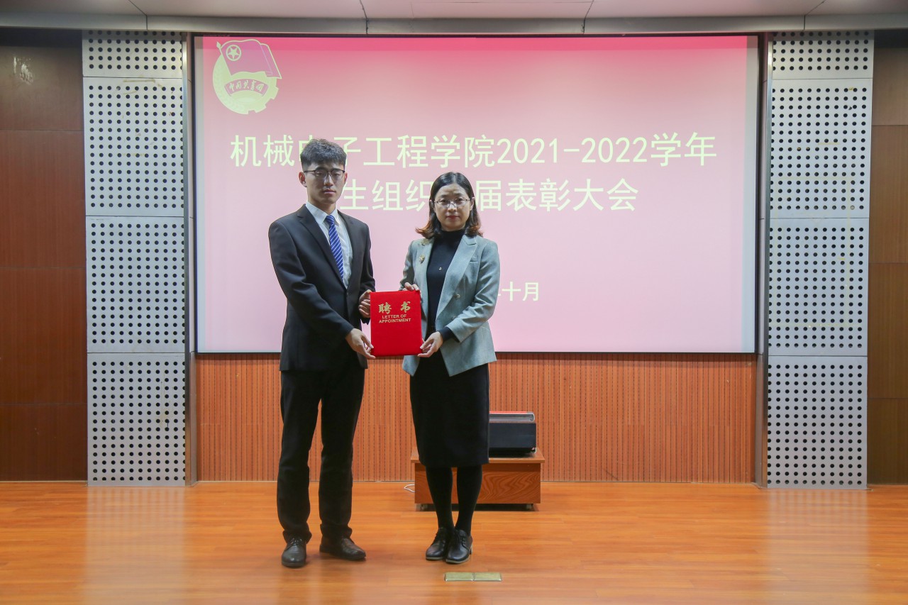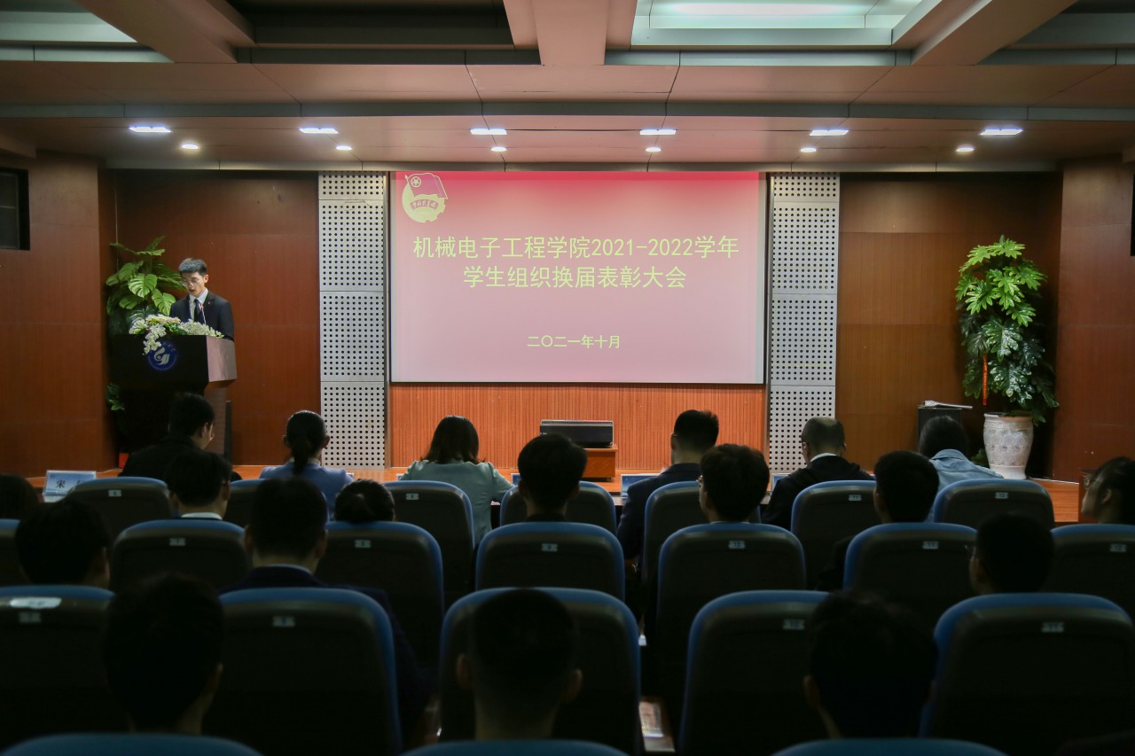 点击:为进一步提高学生组织的自我服务意识,保障学生工作的连续性,10月29日下午,金年会官网在学院报告厅召开2021-2022学年机电学院学生组织换届表彰大会,金年会官网党委副书记、副院长陈猛,团委书记樊玉华,学院全体辅导员及部分校、院学生会主席出席会议,团委老师宋阔主持会议。