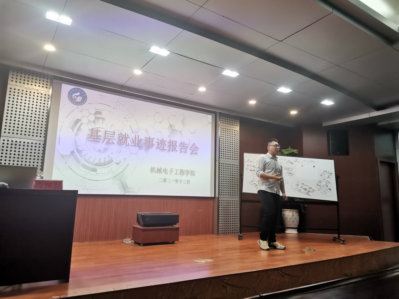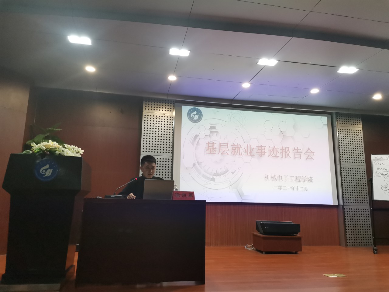点击:为广泛宣传基层就业毕业生的先进事迹和优秀品质,积极营造“到基层去、到祖国最需要的地方去”建功立业、成长成才的良好氛围,12月4日下午,金年会官网在学院楼报告厅举办基层就业事迹报告会,金年会官网材料成型及控制工程2019届校友马川杉、机械电子工程专业2019届校友徐凯军作事迹报告。金年会官网学工办主任樊玉华出席报告会,报告会由辅导员孟凡宝主持。