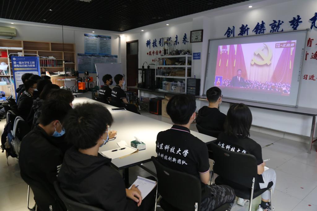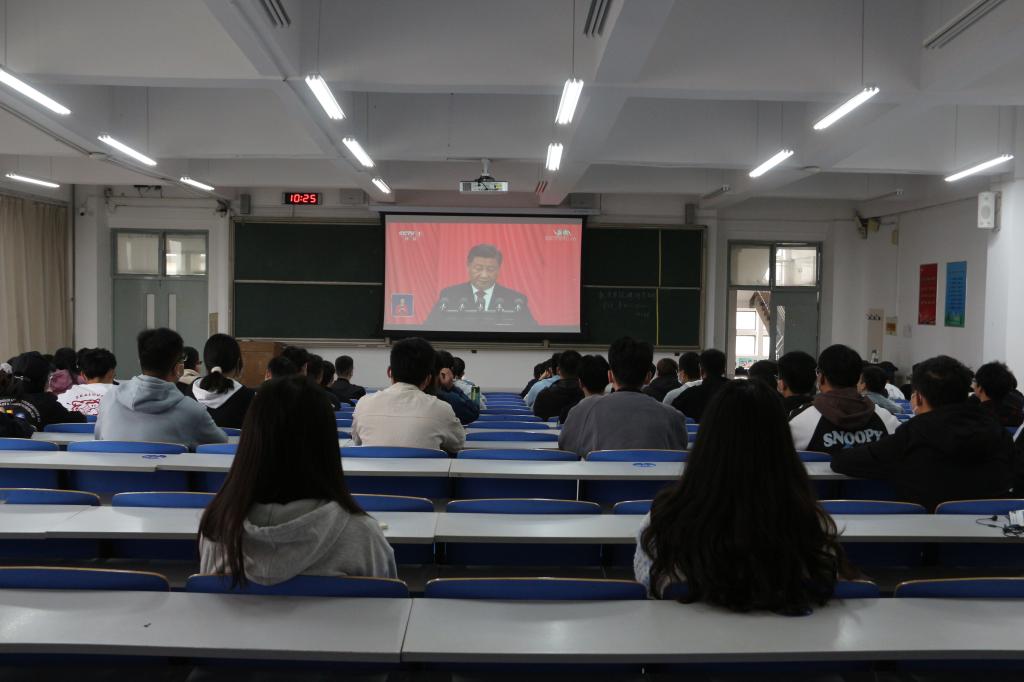 “高举中国特色社会主义伟大旗帜,全面贯彻习近平新时代中国特色社会主义思想,弘扬伟大建党精神,自信自强、守正创新,踔厉奋发、勇毅前行,为全面建设社会主义现代化国家、全面推进中华民族伟大复兴而团结奋斗……”习近平总书记铿锵有力的话语在学院楼、教学楼不断回荡,金年会官网青马工程启航班、嵙大·海信班、小平科技创新团队党支部、梦耀中华服务宣讲团、小平科技创新团队、退役复学学生以及各党团支部于报告厅、会议室、教室集中观看二十大开幕盛况,聆听习近平总书记代表十九届中央委员会向大会所作的报告。会议中同学们都聚精会神聆听习近平总书记的重要报告,时而响起激动的掌声。