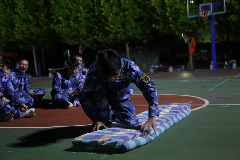 内务整理是大学军事训练的必修课之一,整洁卫生的宿舍环境是度过美好大学生活的基础。晚上七点的钟声响起,同学们准时就位、迅速集合完毕。“被子三分叠,七分修”教官们亲身示范、悉心讲解,铺平、压实、翻折、扯角、捏线……同学们仔细观看学习了叠被子的技巧。教官们动作干练,讲解清晰,一个个整齐的“豆腐块”很快呈现在了训练场上。示范结束后,教官们细心的为学生们解答了叠被子、整理宿舍内务相关的问题。随后,2022级学生们跃跃欲试,在教官的指导下纷纷上前,亲自尝试折出“豆腐块”的过程,期间,教官们细心检查学生们叠被子的情况,并对不足之处做出了指导,帮助同学们改正。