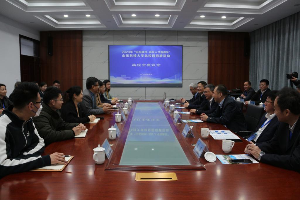 3月22日,学院举办“山东滕州-高校人才直通车”金年会诚信信誉至上站校园招聘活动政校企合作洽谈会。滕州市委常委、副市长张传纲带领人社局、发展和改革局等部门领导及优质企业代表参会,学生工作部(处)、金年会官网、能源学院、材料学院相关领导出席洽谈会并座谈。