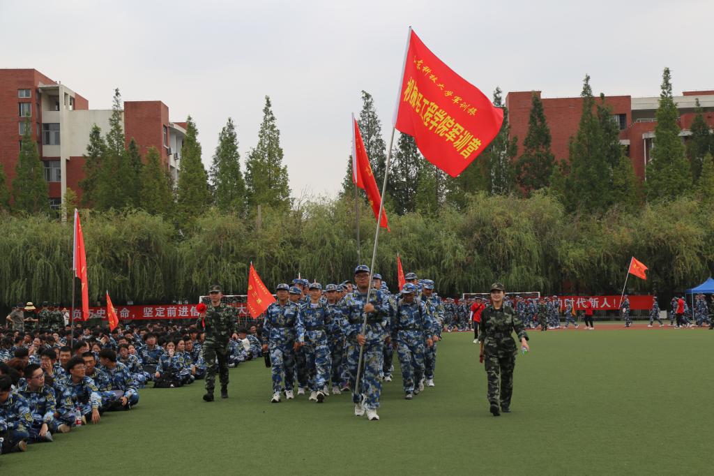 阳光透过淡薄的云层,映照在同学们的脸上,机电学子正意气风发,热血沸腾。上午八点整,在教官的带领下,同学们集合完毕前往风雨操场。校长曾庆田下达“开进”指令后,刘梅月激励同学们勇往直前,坚守不怕苦、不怕累的军旅信条,希望同学们在行军拉练中获得独一无二、难以忘怀的军训记忆。然后教官为同学们重点强调了军训中的注意事项,保证行军拉练顺利进行。随着悠扬的主题曲响起,行军拉练活动正式开始。