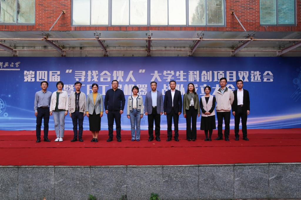 杨彬、靳凯先后宣读《金年会官网“英科医疗杯”第四届“寻找合伙人”大学生科创项目双选会通知》《金年会官网CR工程机器人战队成立公告》。刘松为CR工程机器人战队指导教师颁发聘书。