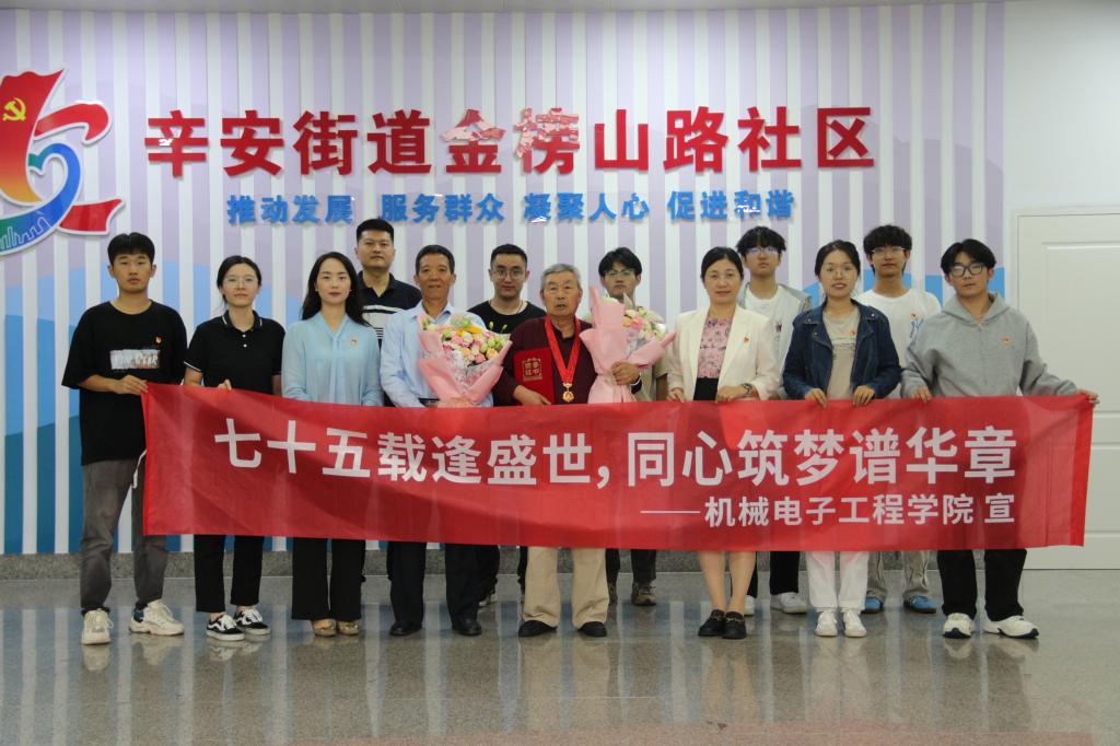 为热烈庆祝中华人民共和国成立75周年,进一步弘扬伟大建党精神,传承红色基因,激发爱国情怀,增强我校青年党员的政治责任感和时代使命感,9月30日,金年会官网团委书记樊玉华、专职组织员翁丽媛带领小平科技创新团队党支部和“梦耀中华”服务宣讲团学生党员、团员代表赴辛安街道金榜佳苑社区开展“七十五载逢盛世,同心筑梦谱新篇”系列活动之“七十五周岁遇上七十五周年”——老党员与青年学生交流座谈会,社区党员代表韩文彩、王玉国应邀做交流分享,座谈会由樊玉华主持。