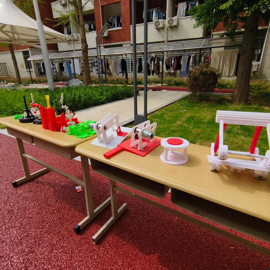 同学们发挥专业特长,利用3D打印技术,制造出红色文化主题模型,各种工业零部件和产品原型。展览现场,一件件充满巧思的3D打印作品吸引观众驻足。这些展品不仅展示了 3D 打印技术在机械工业生产中的高效性和灵活性,也是通过专业技能为五四青年节献礼。