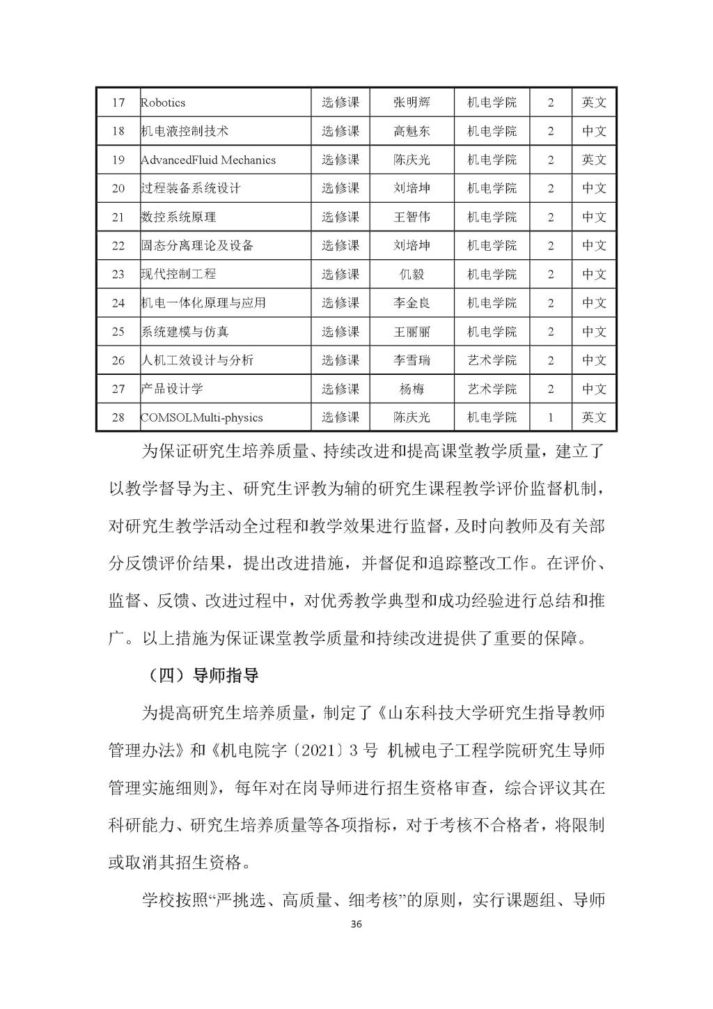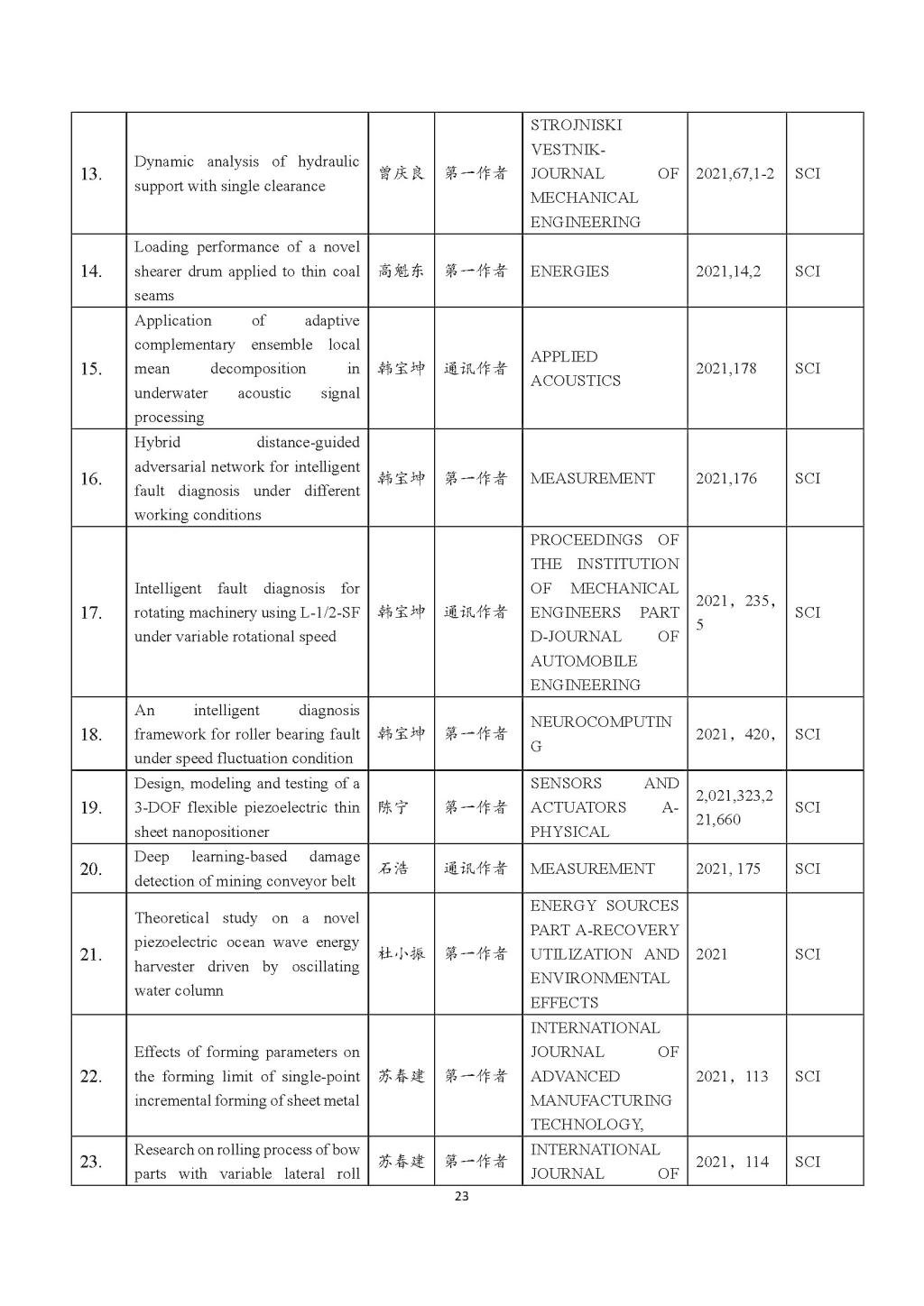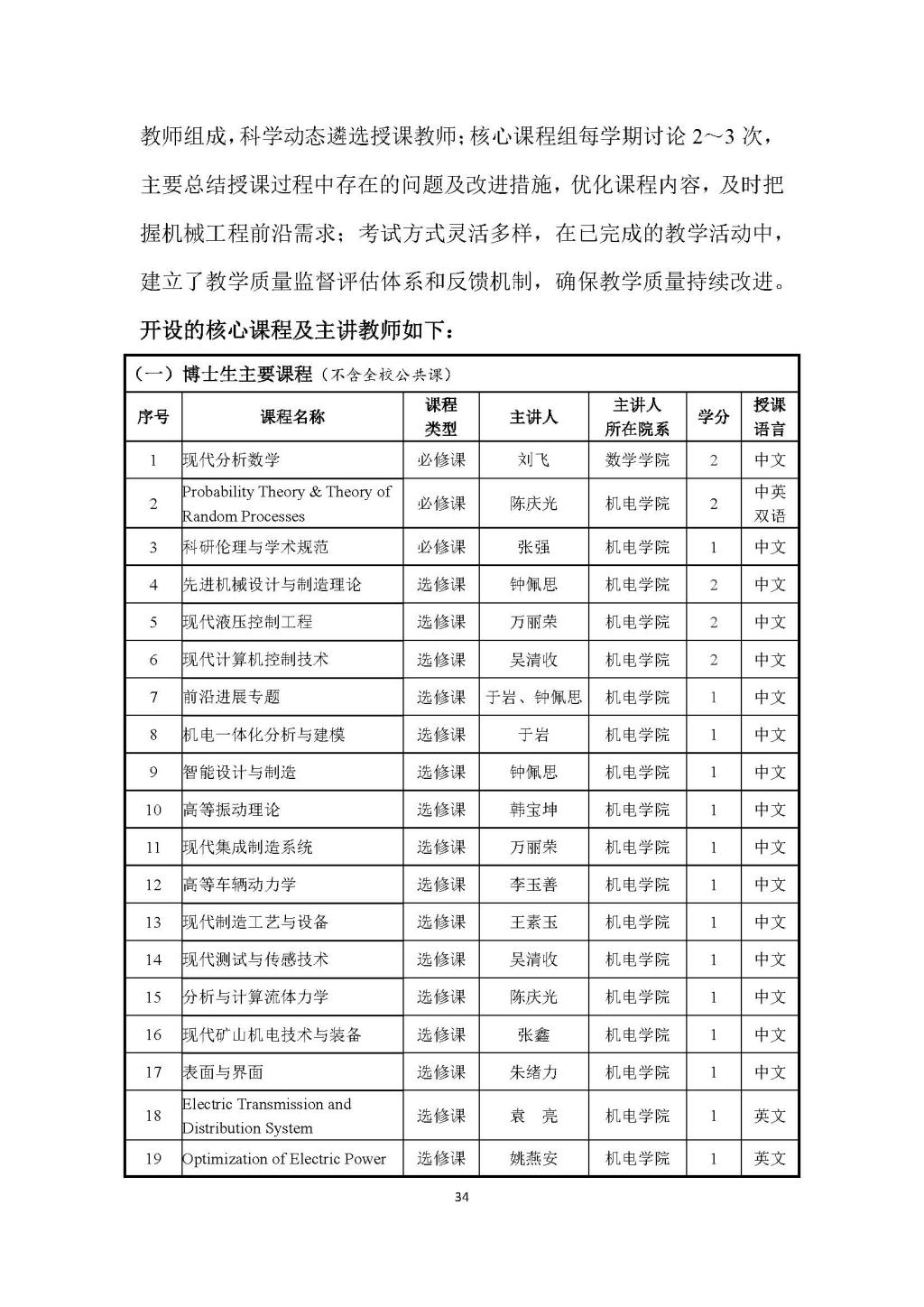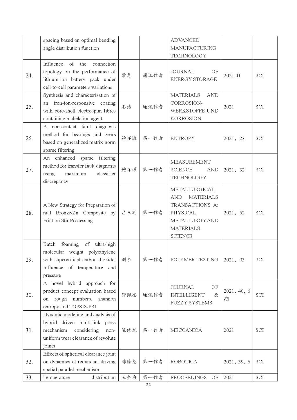 机械工程一级学科博士学位授权点2021年建设年度报告
