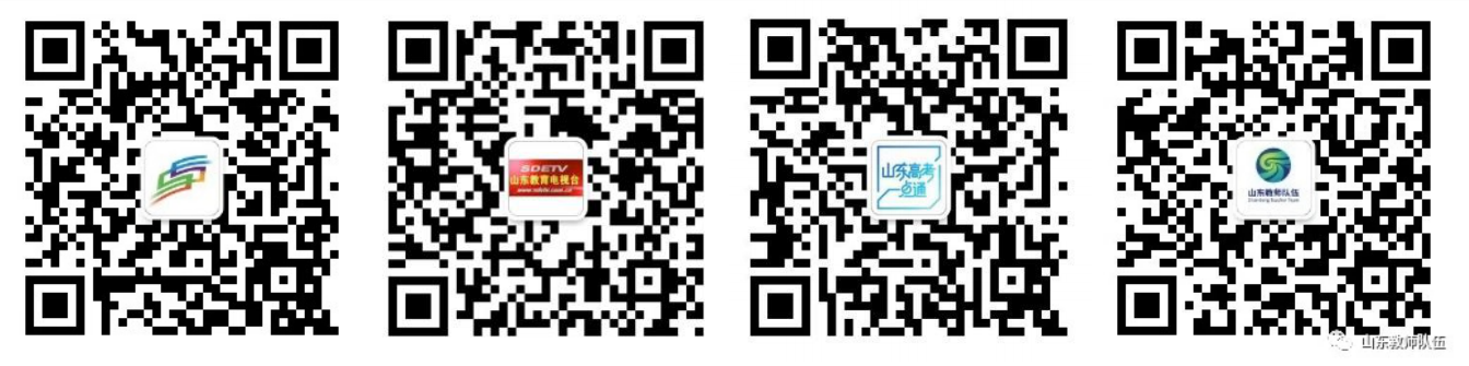 (二)网络端:通过扫描以下二维码,进入“山东教育电视台”、“山东高考一点通”或“山东教师队伍”微信公众号,在“疫情防控”中,打开“新课堂特别节目”观看,并进行在线提问,我厅将组织专家提供线上答疑。(直播页面将于 2 月 2 日开通)