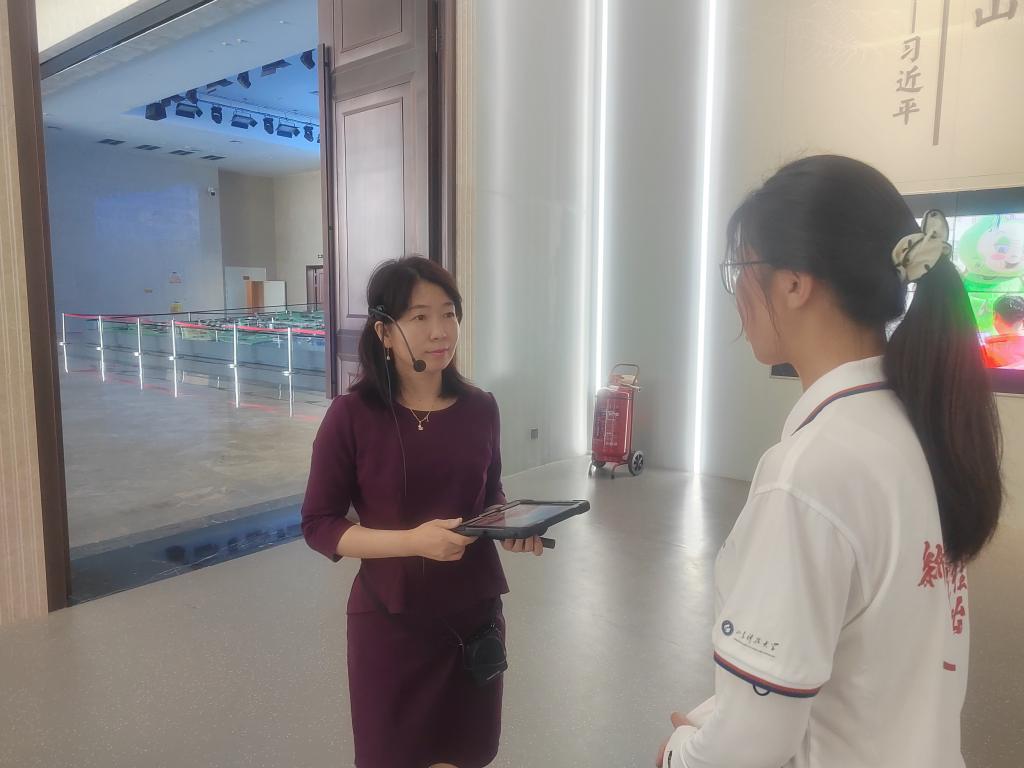 团队成员跟随专业讲解员开始了对胜利石油科技馆的参观之旅。馆内分发展史厅和科普厅,两厅入口处都镶嵌有大型的V字型浮雕,“V”的寓意就是 “胜利”。首先,宣讲团进入石油发展史厅,了解中国石油艰难的勘探历程,感受石油工人艰苦奋斗的胜利油田精神。美国和日本曾先后在中国勘测,提出了“中国贫油论”。然而,在李四光、黄汲清等地质学家十年如一日的努力下,胜利油田被发现了。讲解员讲道:“以前工人们住的是地窝子,吃的是青菜汤。如此艰苦的工作环境却并没有打消他们的积极性,受伤了,简单处理一下就继续投身开采工作。”听完这些,队员们深深被石油工人的事迹所感动,纷纷表示,要积极学习和发扬石油工人的崇高品质,以他们为榜样,为实现国家富强、人民幸福的中国梦贡献自己的力量。